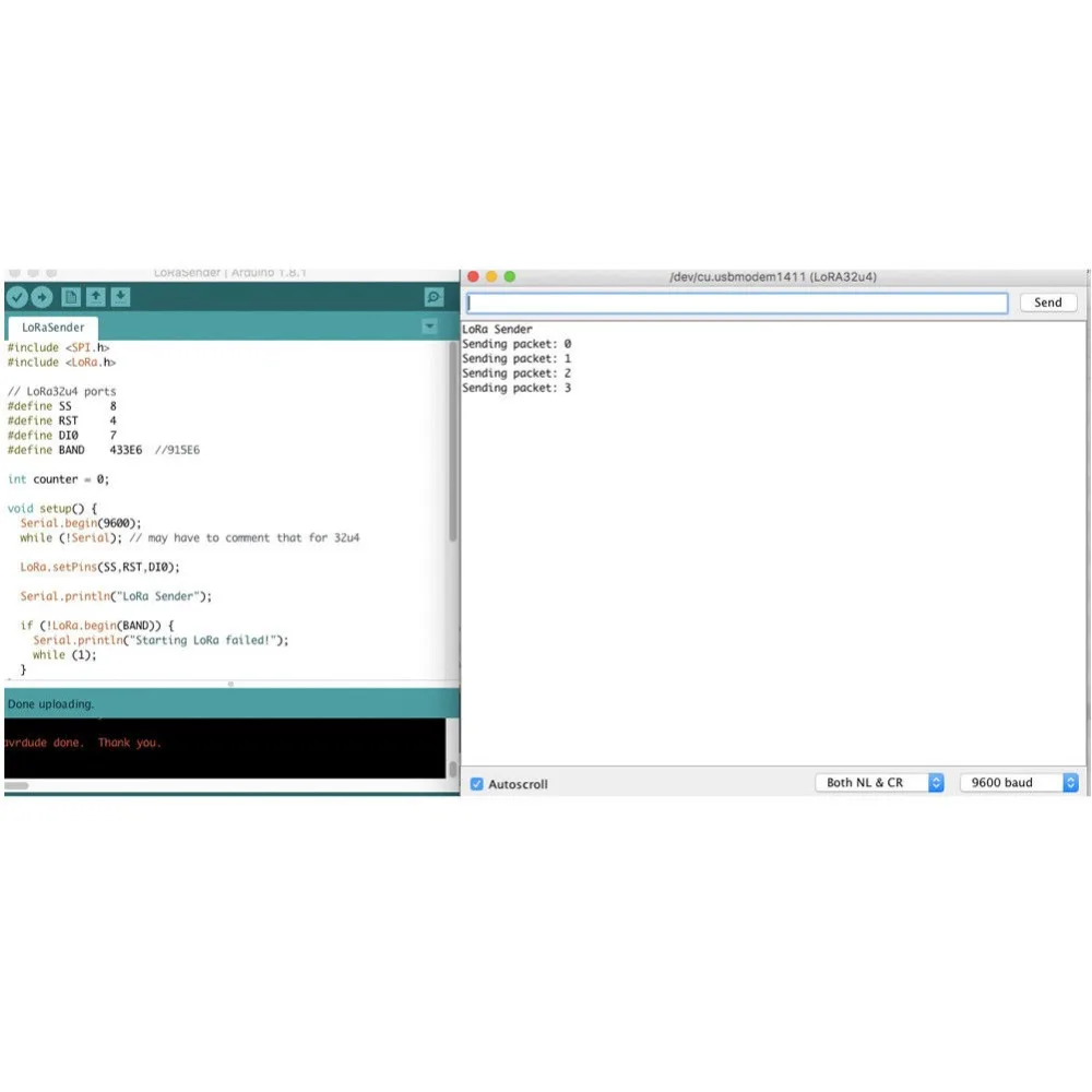 LoRa32u4-это плата с низким энергопотреблением на базе модуля LoRA Atmega32u4 и HPD13 868 МГц и схемы зарядки аккумулятора USB. Идеально подходит для создания беспроводных сетей дальнего радиуса действия, которые могут превышать 2,4 ГГц 802.15.4 и аналогичных, он более гибкий, чем Bluetooth LE, не требует высокой мощности в отличие от Wi-Fi и имеет большой радиус действия.