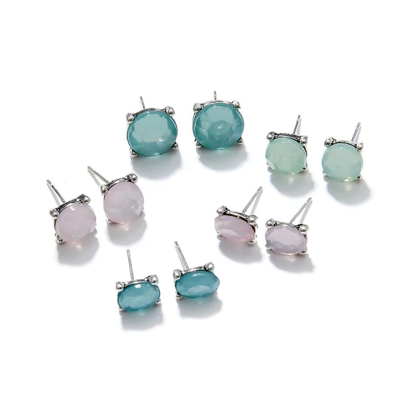 Серьги-гвоздики Yobest ручной работы женские, круглые геометрические Комплект сережек для женщин из смолы, эффектные ювелирные украшения, 5 дизайнов, 2018