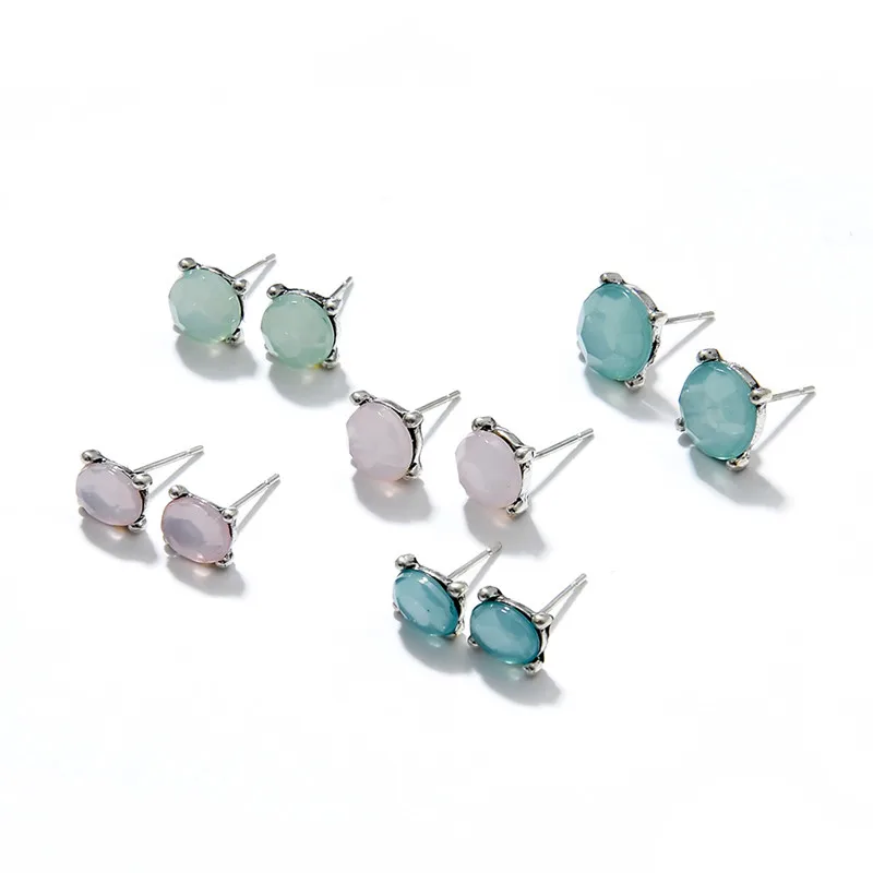 Серьги-гвоздики женские с зеленым камнем, 6 парнабор, набор сережек...