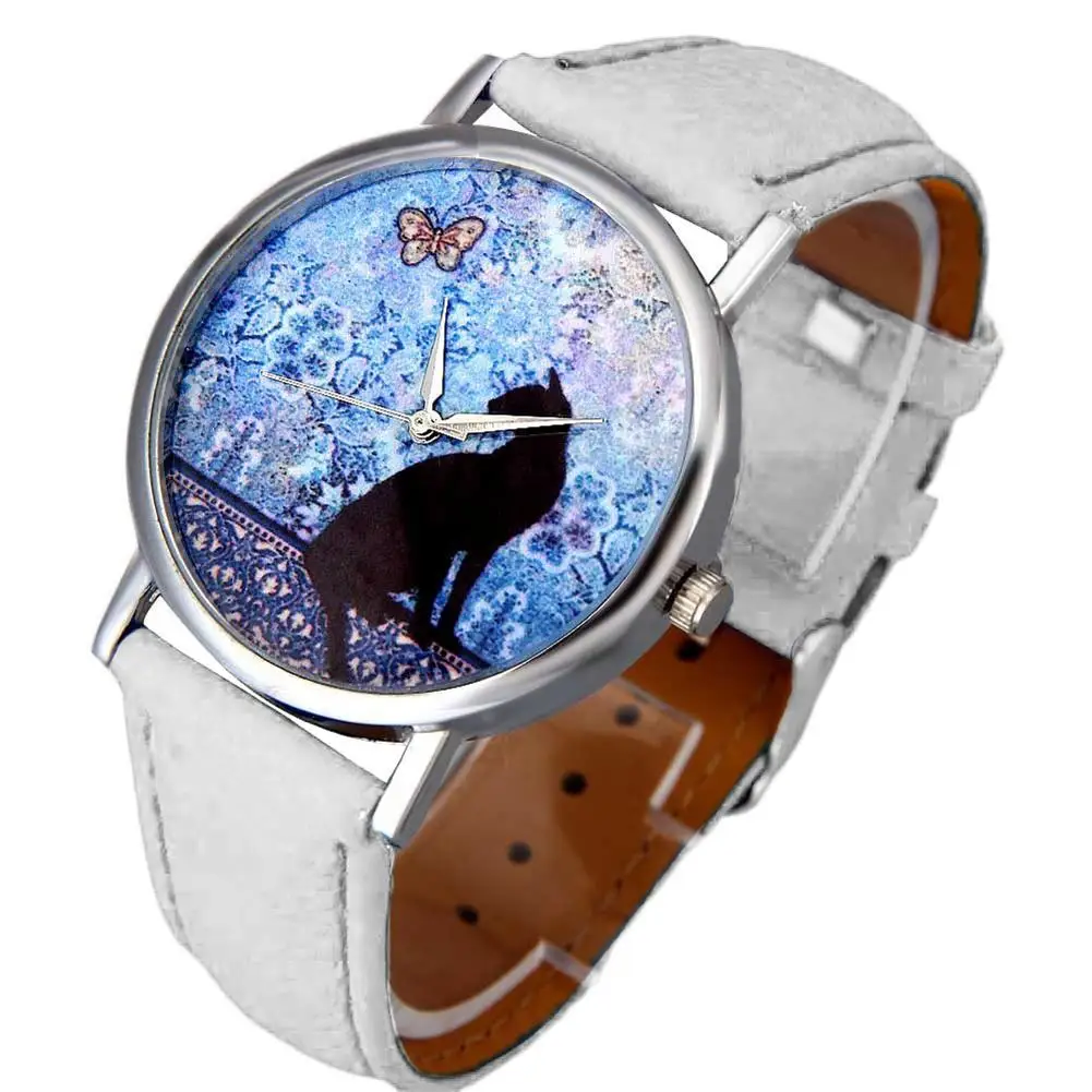 Модные Женские Аналоговые кварцевые наручные часы с рисунком кота из искусственной кожи