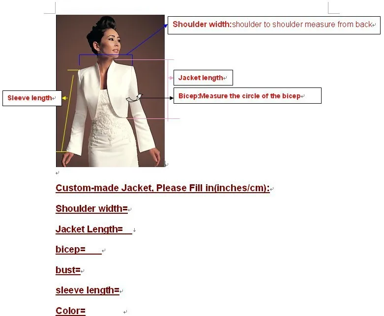 Лучший опыт на Aliexpress. Очень полезный продавец, быстрая и Отличная связь. Я отправил запрос цвета и размеры для 2 разных болеро, и они оба абсолютно идеальны. Они были сделаны и доставлены очень быстро. Заказал для меня и моей дочери на свадьбу, 2 разных цвета. Они оба выглядят идеально, высокого качества. Высокопрофессиональная работа. Спасибо продавцу.