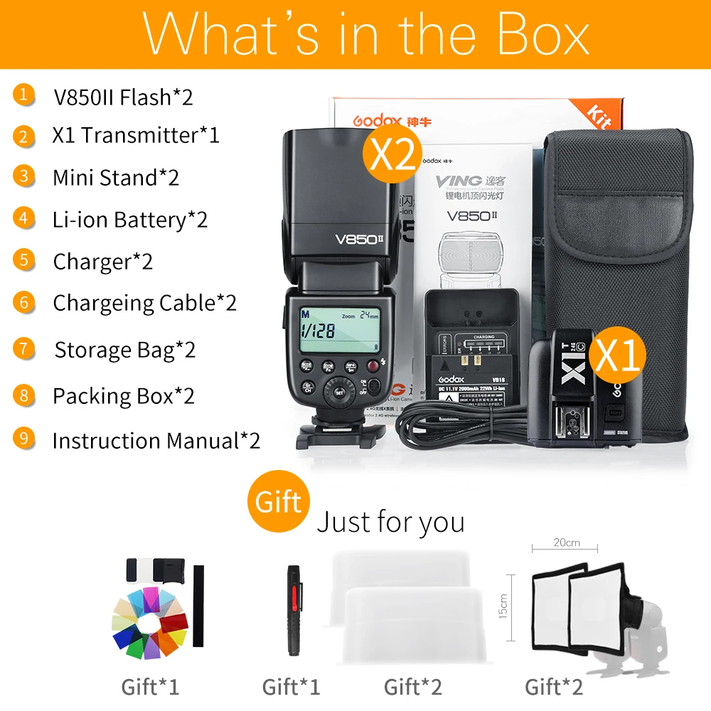 2x Godox V850II 2,4G GN60 Беспроводная система X литий-ионная батарея Speedlite + X1 триггерный передатчик для Canon Nikon Sony Fuji Olympus