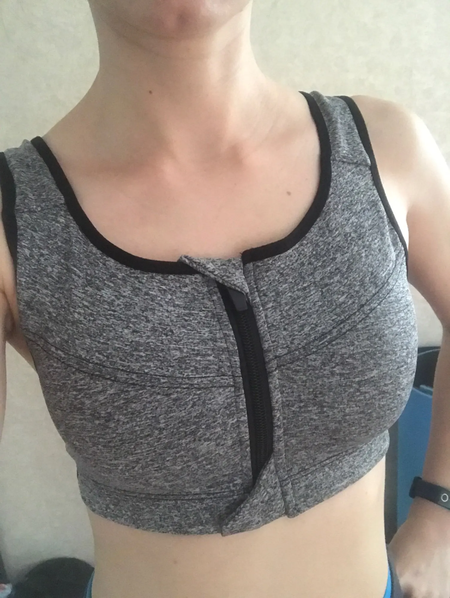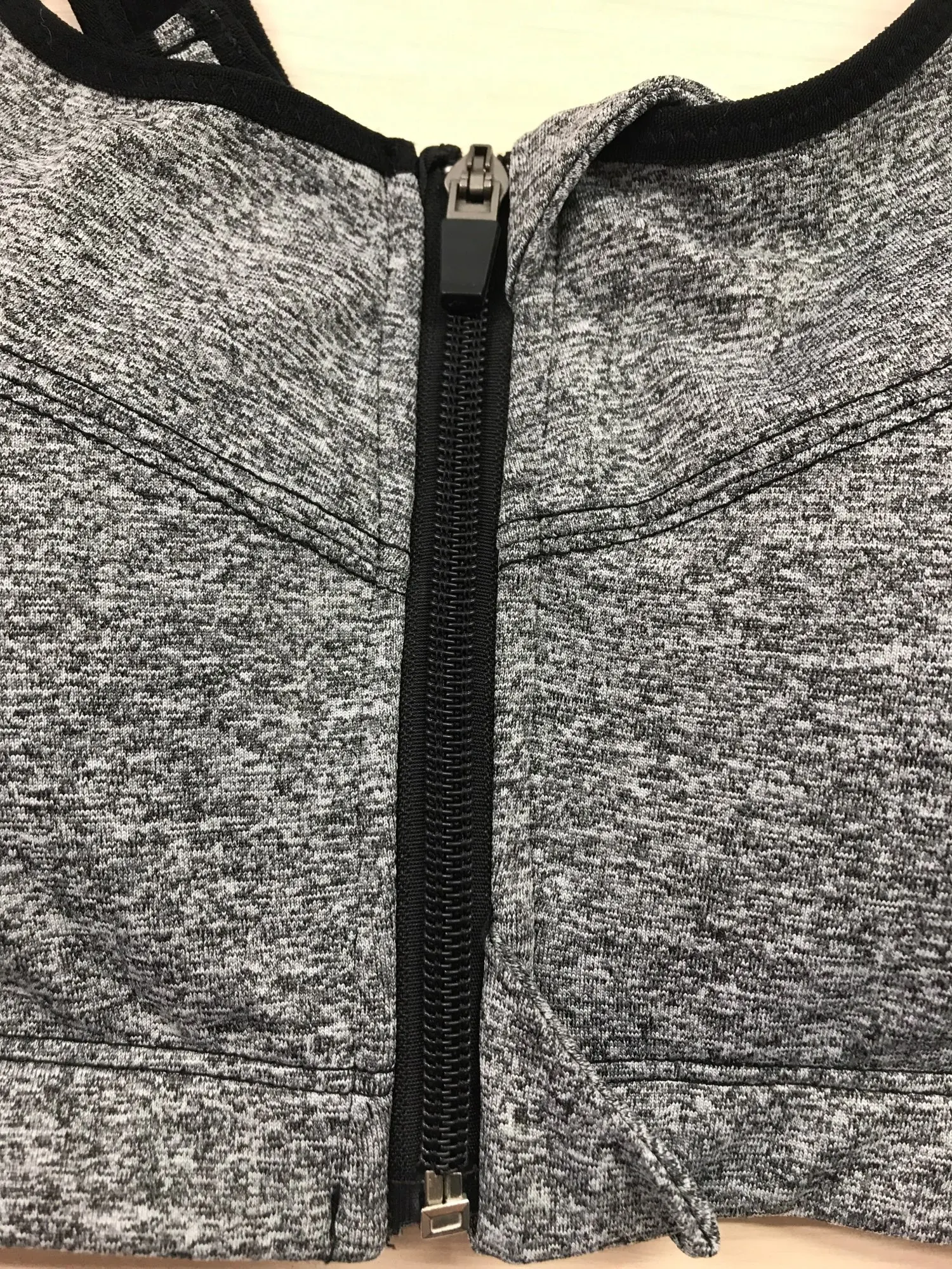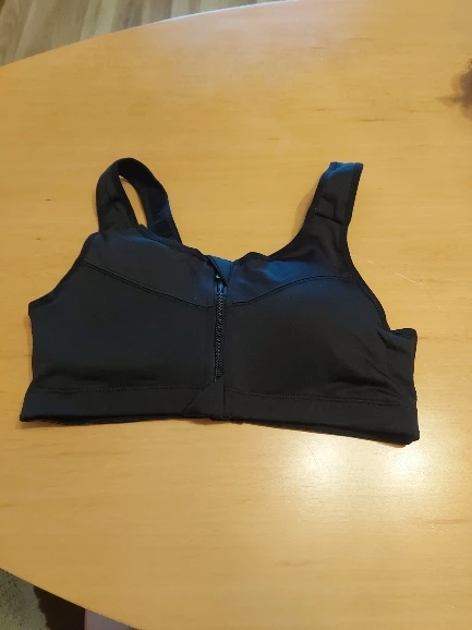 Хороший спортивный бюстгалтер, грудь держит хорошо, молния не расстегивается при движении.