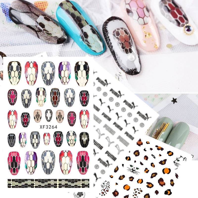 Наклейки для дизайна ногтей, наклейки для ногтей с головой змеи, самоклеящиеся наклейки для маникюра Кончиков Ногтей, все наклейки для дизайна ногтей, леопардовый дизайн s