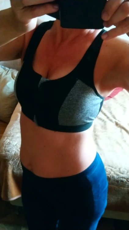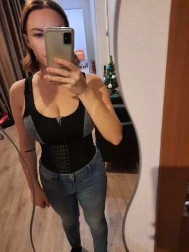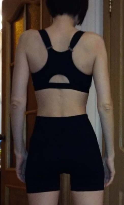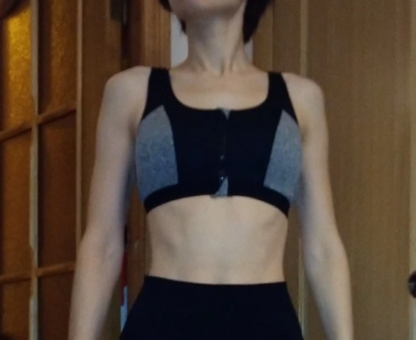 Заказ пришел быстро. Соответствует описанию. Мой обхват груди 97, взяла размер L, как раз максимально плотно, самое оно для бега. две застёжки, оч удобно.