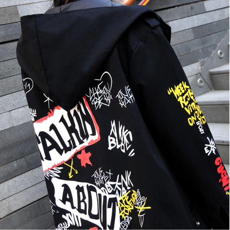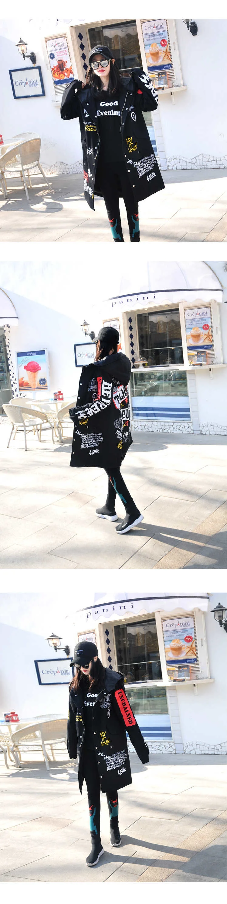 Женское длинное пальто с капюшоном, черное пальто с надписью, модель DQ0287 на весну, 2022