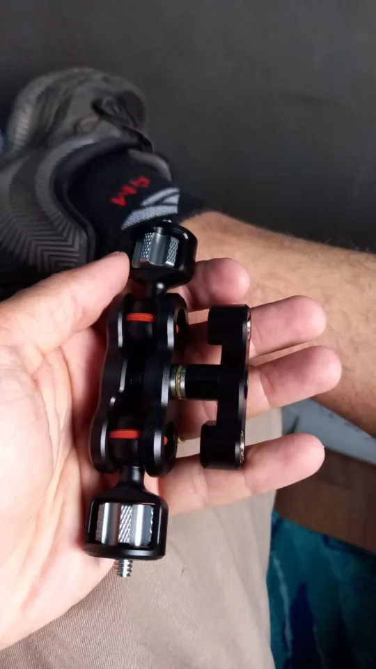 Пока крутил полученный новый арм, из ручки вывалился болт мелкий на шестиграннике, вывалилась пружина и пришлось разбираться, в какой порядке там все стояло) ну и ещё подклеивал клеем гайку в ручку. Ещё шестигранник маленький пришлось у себя искать, так как в наборе такого нет. В целом, удобная штука, взял для крепления микрофона к клетке камеры