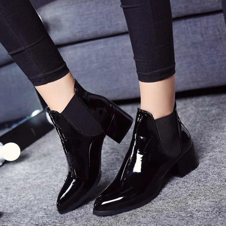 2019 новые модные женские эластичные лакированные кожаные ботинки с...