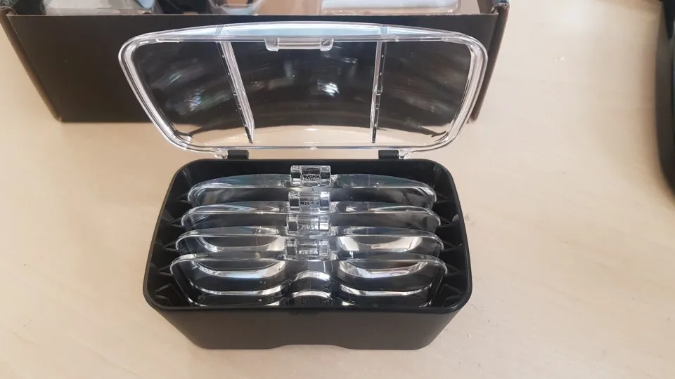 Очень ждала эти очки. Пришли в коробке, отлично упакованы. Ещё не использовала, при осмотре ничего не сломано, полный комплект. Рекомендую.