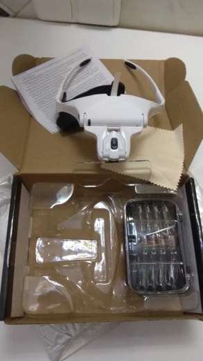 Продавец - огонь! Рекомендую. Доставка - чуть быстрее заявленного срока. Очки - тут чувства смешанные. Реально что то делать можно до 2.0х. 2.5х только за столом, работая с какой-нибудь мелочью. Но основная засада в другом, очень слабое крепление линз. Если работать только за столом, можно, брать. В противном случае, 100% расколотите линзу, причем самую ходовую. Отдельно линз не купить. Придется брать, как я, самый дешевый комплект для замены уже разбитой линзы, ну и на запчасти остальные очки. От батареек фонарь не пробовал, у меня был на аккумуляторе с зарядкой от usb. Очень удобно, но свет слабоват. В целом очки удобные, можно работать глядя и в очки, и под них. Если работать нагнувшись, есть резинка, с дужек могут упасть. На резинке надавливает височную область, лечится тепловым пистолетом.