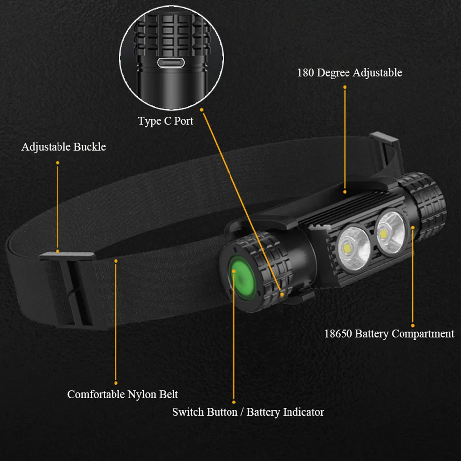 Водонепроницаемый светодиодный головной фонарь USB T6, затемняющий головсветильник фонарь для велосипеда, светильник фонарь, светодиодный светильник онарь, перезаряжаемый аккумулятор 1x18650