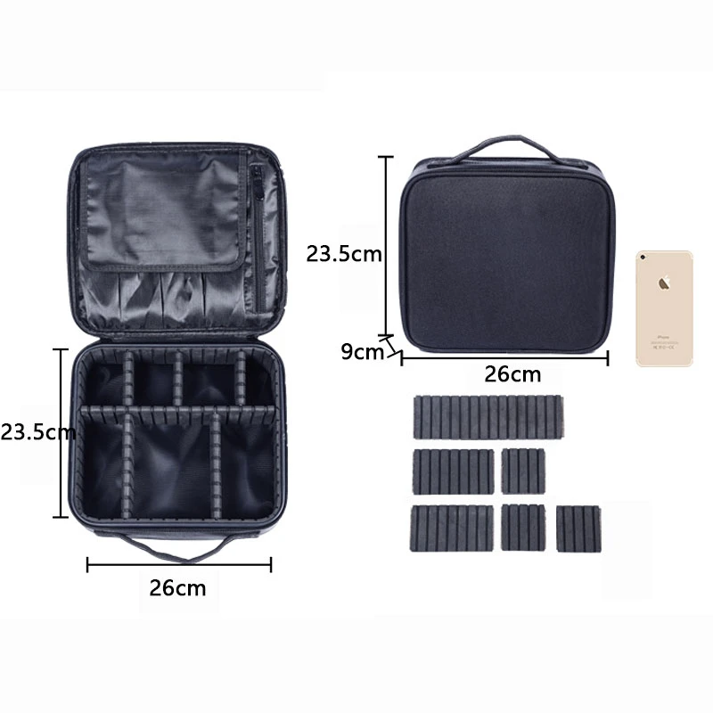 ●Много места для хранения: в этой косметичке достаточно места для хранения макияжа и косметических принадлежностей, таких как помада, блеск для губ, кисти для макияжа, тени для век, палитры для макияжа, кисти для волос, средства по уходу за кожей, лак для ногтей, инструменты для дизайна ногтей, шампунь и так нет.