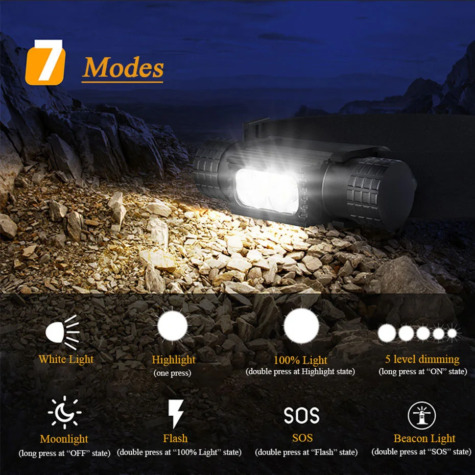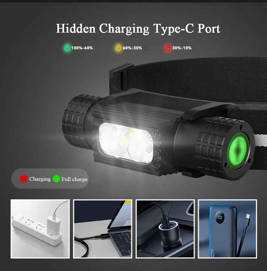 Светодиодный налобный фонарь, 1200 лм, 10 Вт, T6, белый мини-фонарь с аккумулятором 18650, налобный фонарь H02A H05A, налобный фонарь для кемпинга, рыбалки, охоты