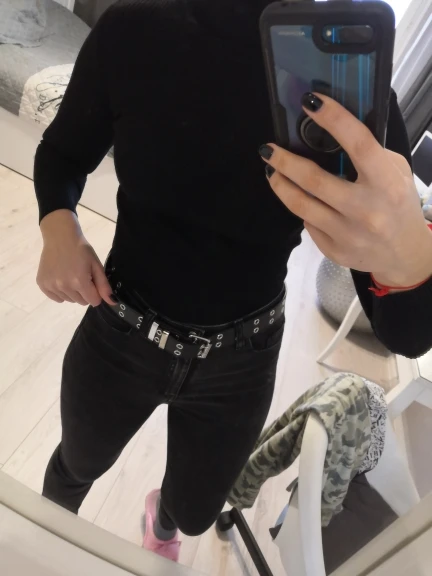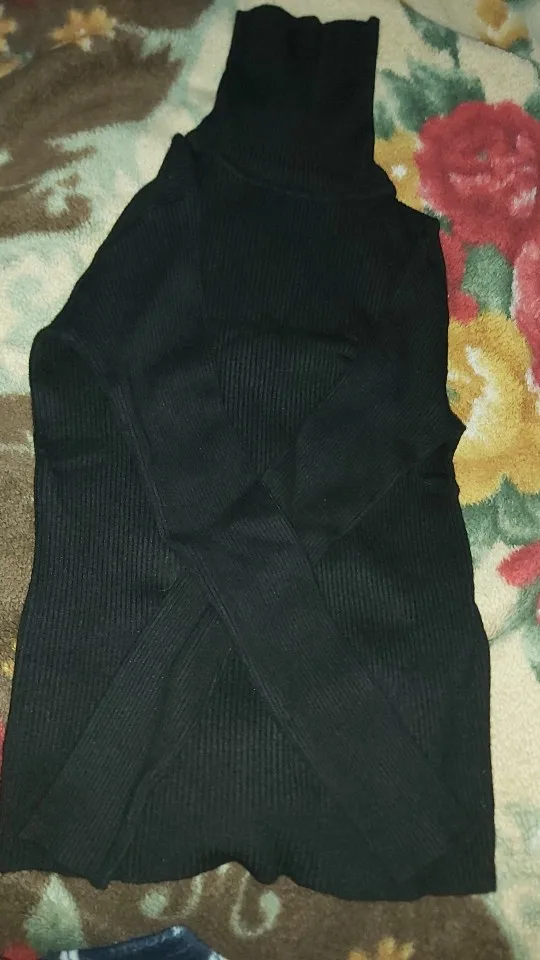 Обычная чёрная водолазка. Девушкам пышнее моих параметров (рост 164, талия 70, грудь 85) не советую заказывать. Скорее девушкам российского размера 40-44 не более! Минусы: рукав впритык да и сама водолазка могла бы быть подлиннее, готовьтесь, что при поднятии рук ваш пупок оголится. Подойдёт под джинсы с высокой посадкой. Плюсы: доставка до Челябинска за 11 дней, мягкая и очень приятная к телу.