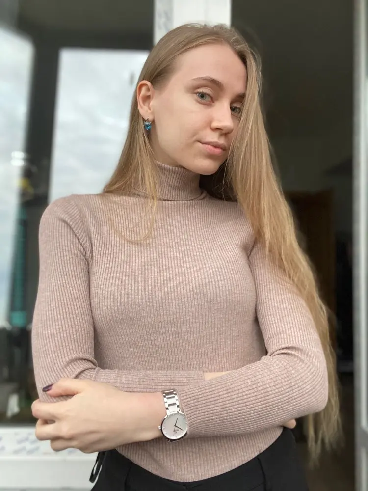 Водолазка качественная, приятная к телу, мягкая и красивая. Немного коротковаты рукава и она в обтяжку. Хотелось бы чуть чуть свободнее. А так все отлично, швы ровные, нитки не торчат. Есть слабый запах при глажке