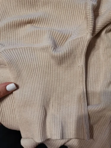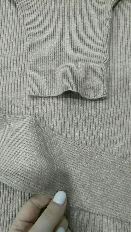 Свитер хороший, все швы хорошо прошиты, дырок нет. На параметры 92-66-98 подошл хорошо. Водолазка будет в обтяжку, но не чересчур. Есть запах от свитера, но после стирки думаю уйдёт. Ещё не носила, дополню отзыв после носки. К телу приятный, но по ощущениям понятно, что одна синтетика. Не стоит ожидать сверхкачества материалов, все таки и стоит 550 рублей. К покупке рекомендую.
