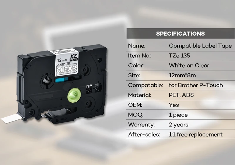 CIDY Tze 135 Tz135 белый на прозрачной ламинированной совместимой Brother P touch 12 мм tze-135 tz-135 tze135 лейбл скотч Кассетный картридж