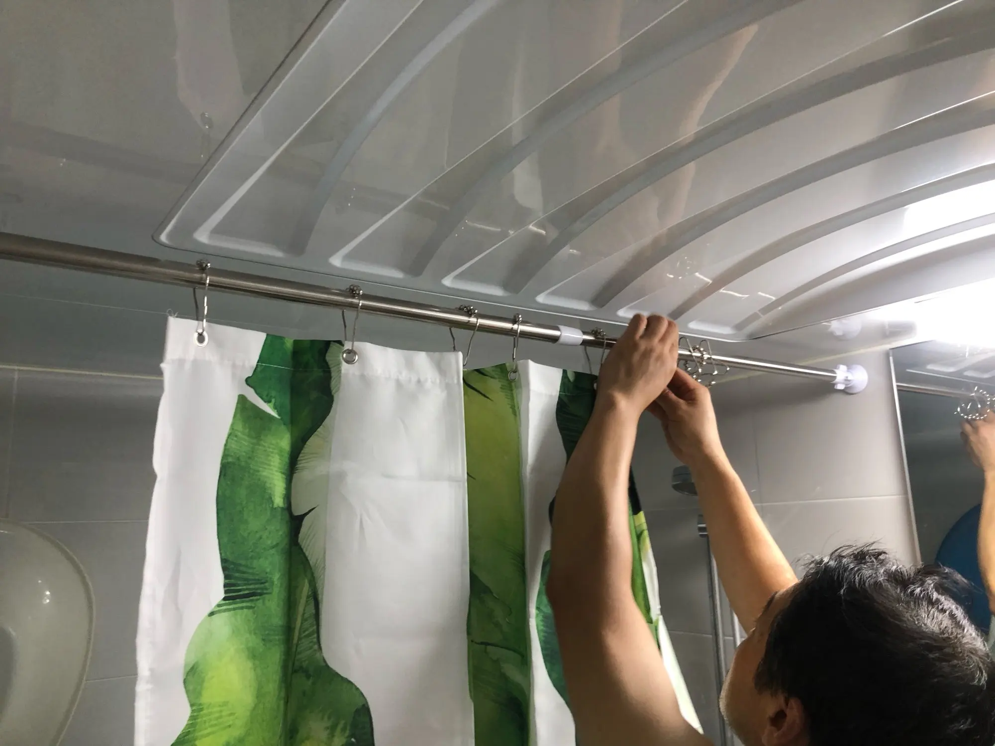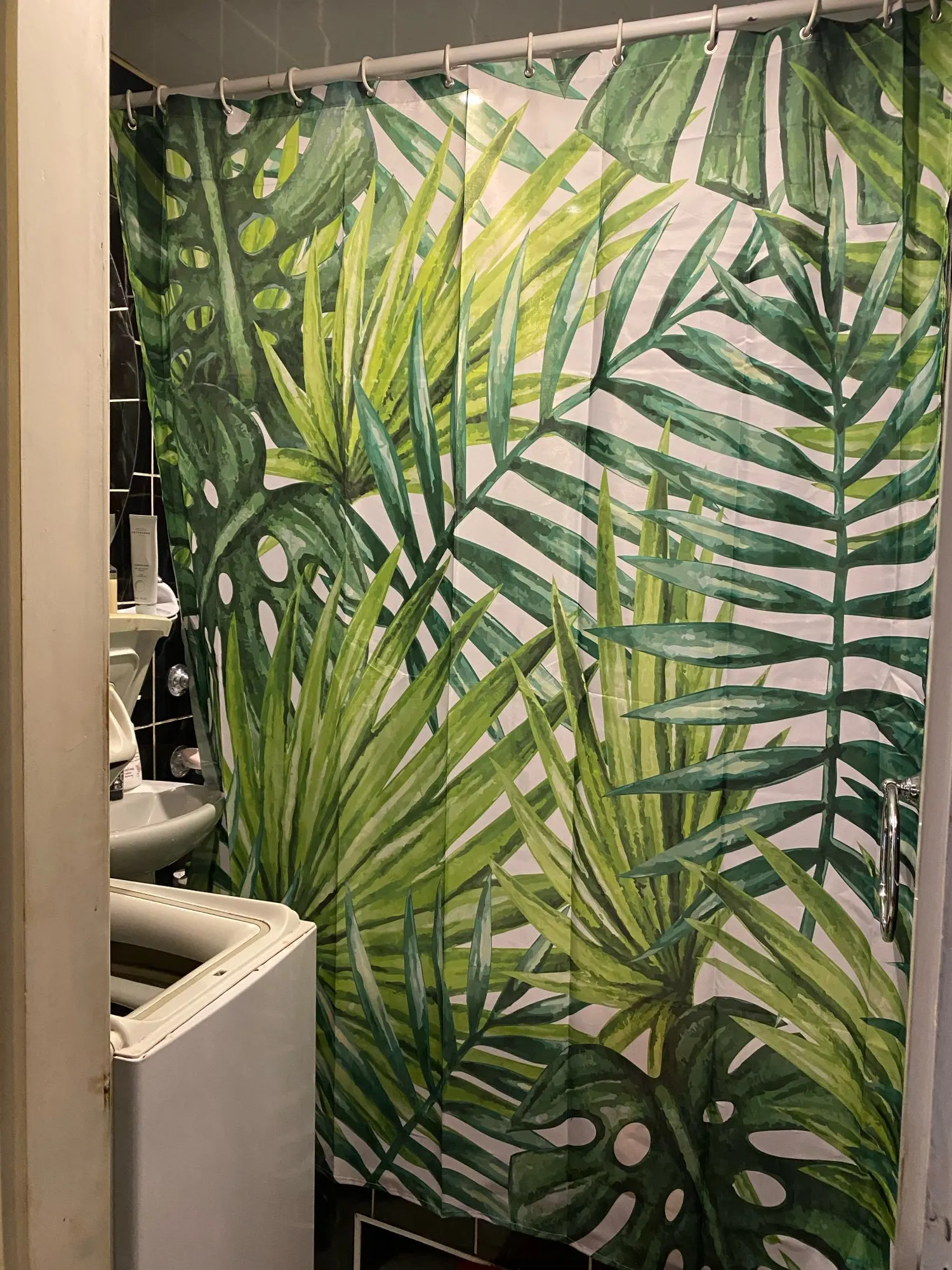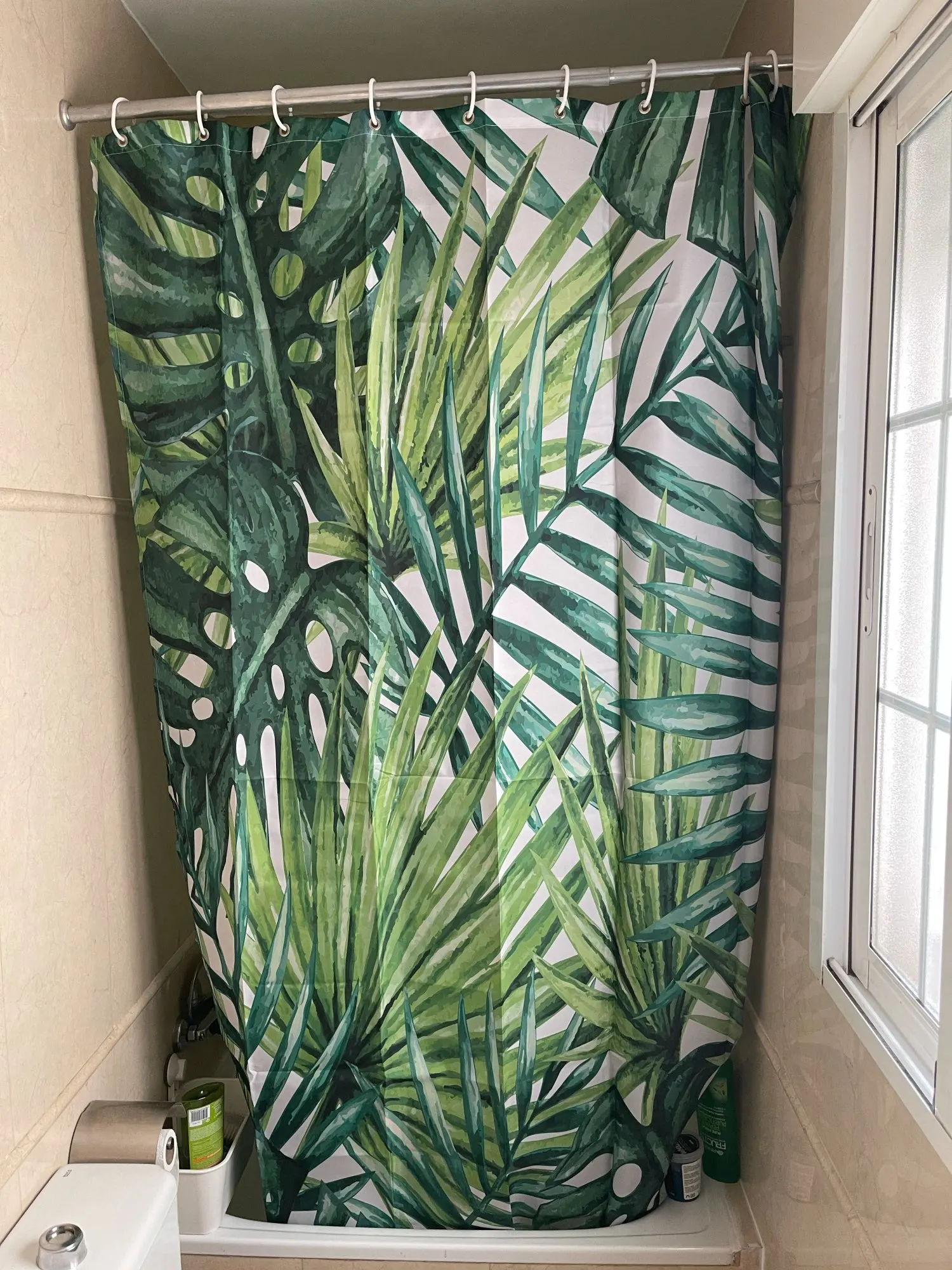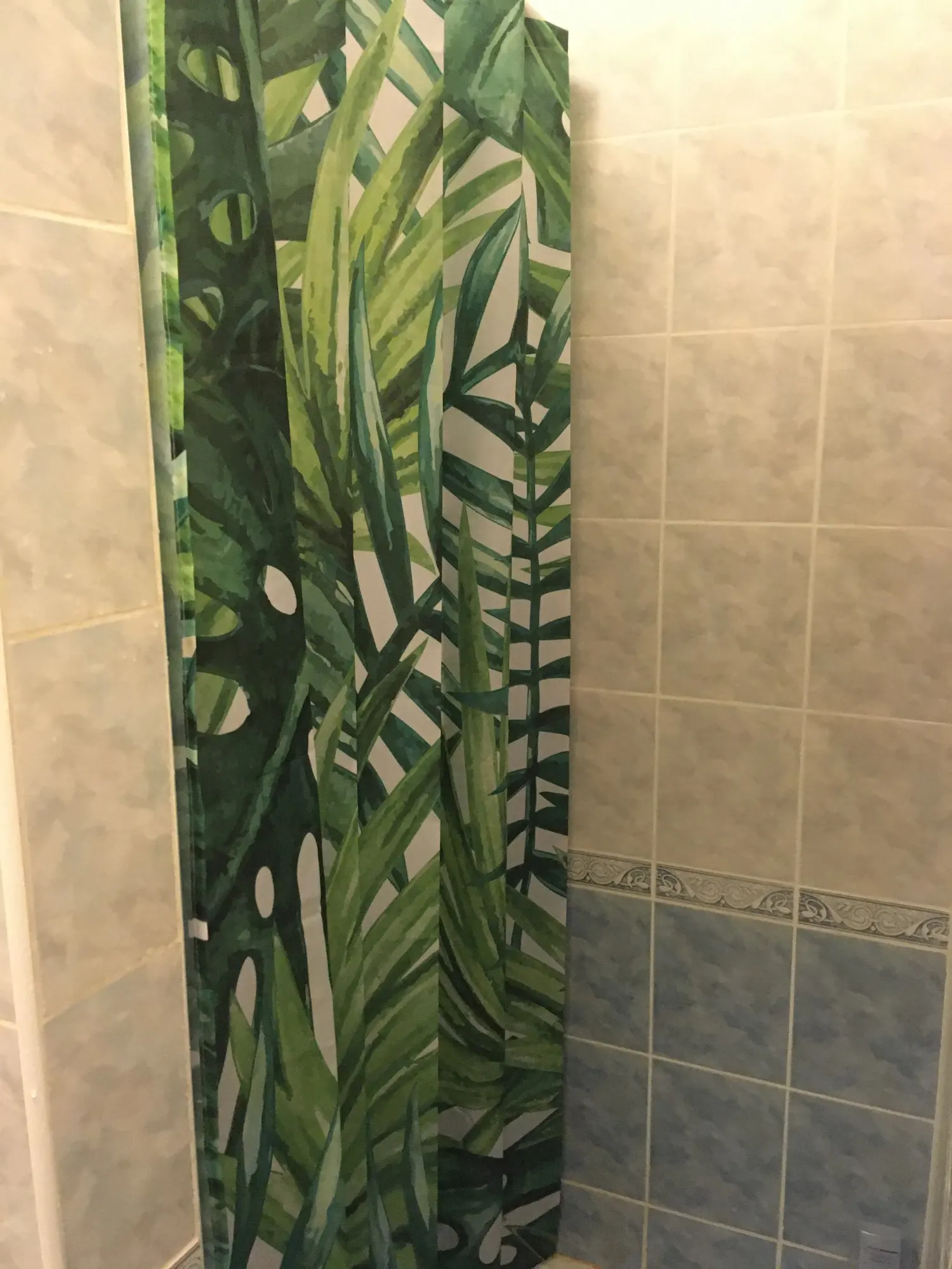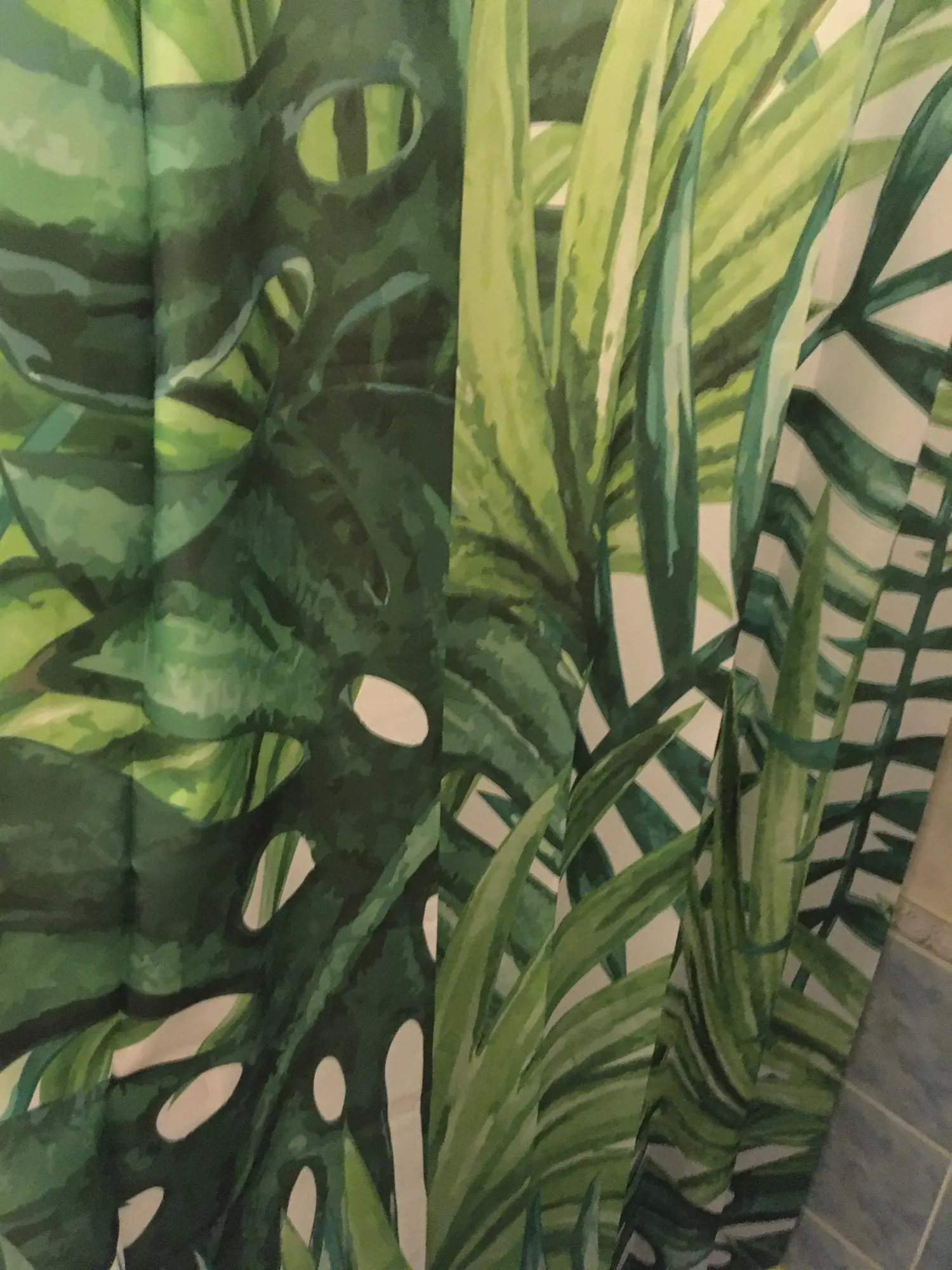 Красивая штора, но очень тонкая, пропускает воду. Мне нужно купить белую занавеску, чтобы положить внутрь, поэтому есть что-то, что останавливает воду от душа. За эту цену можно ожидать лучшего качества.