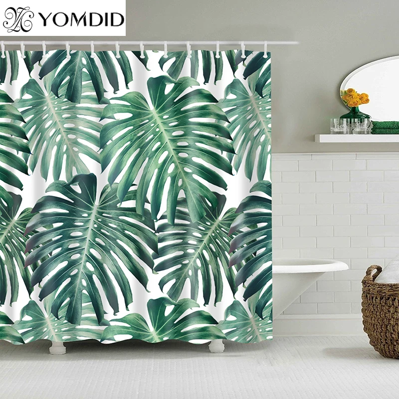 Занавеска для душа, из полиэстера, с принтом листьев
