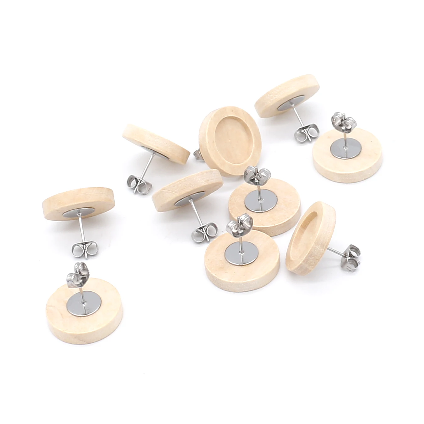 Основа для сережек-гвоздиков (с заглушкой) из нержавеющей стали, пустое дерево основа для кабошона для серег, 20 шт., 12 мм, стеклянные кабошоны