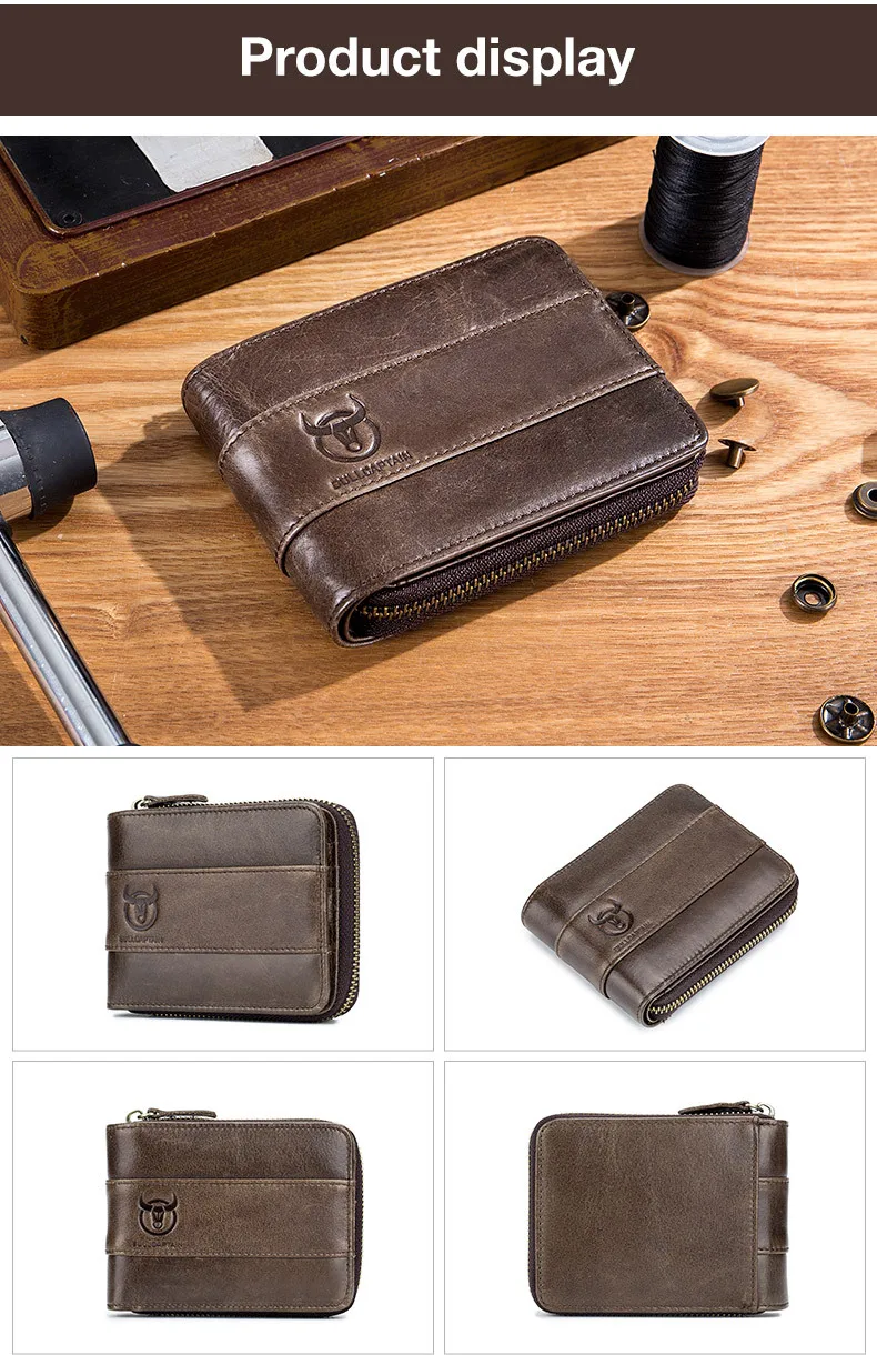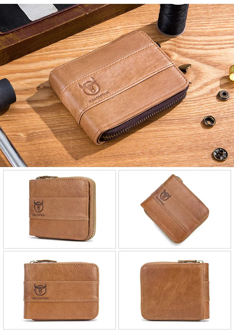 Мужские кошельки из натуральной кожи, маленький кошелек с кармашком для мелочи, бумажник на молнии в ретро стиле, искусственная воловья кожа, мужские бумажники