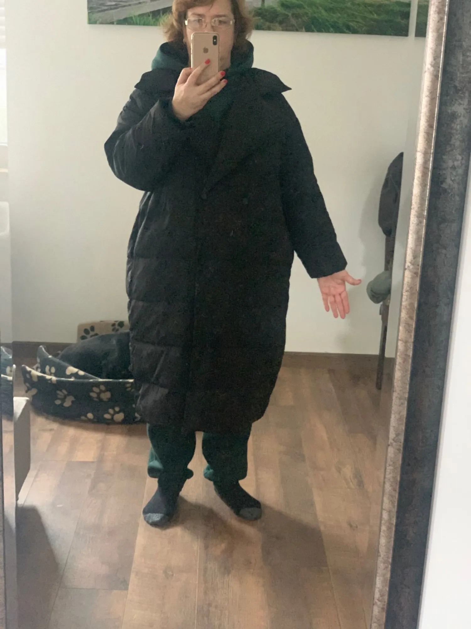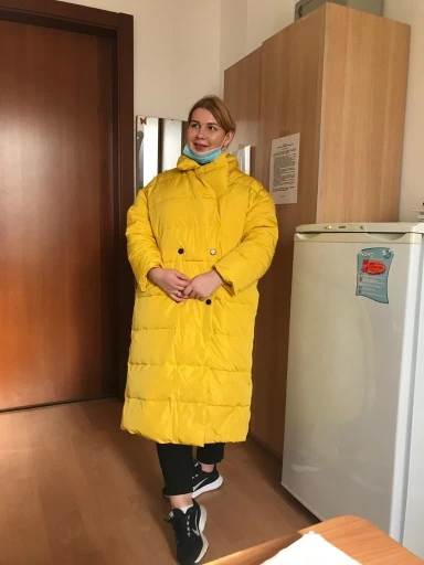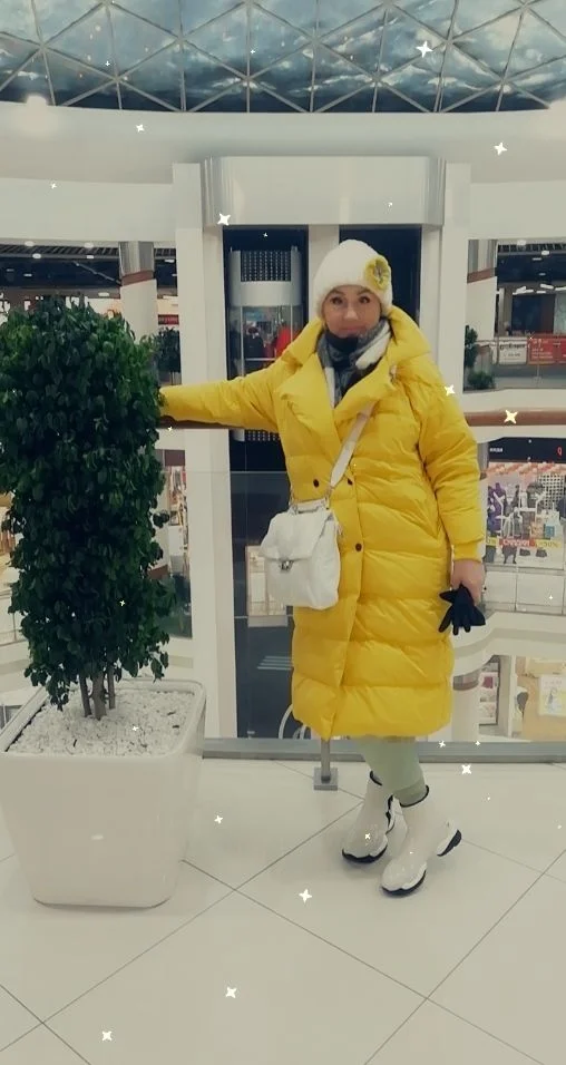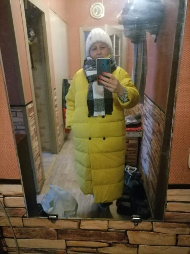 Очень классный тёплый пуховик , в жизни скорее горчично-жёлтый , что в принципе только добавляет ему плюсов , взяли самый большой размер не прогодали, сначала думали будет холодно , по виду тоненький , но в -25, не замёрзли ) будете думать стоит или нет -берите , крутой ) Мама очень довольна, доставка пришла за месяц с праздниками )