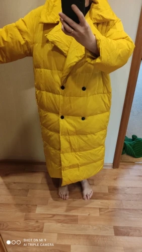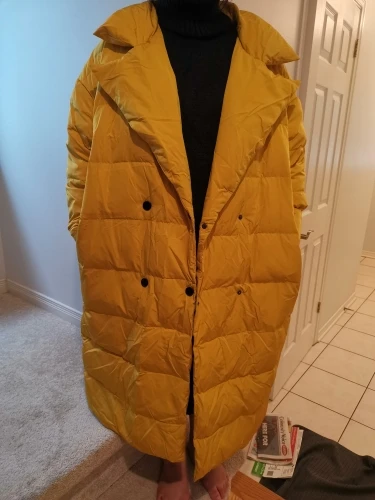Пуховик на очень понравился .Ожидала ,сто будет более плотным .На рост 162 ,короткие рукава в рекомендуемом размере продавцом .Воротник ,как тряпочка ,слишком тонкий ,что толком не поставить даже .Большие отвороты "тряпочки" ,вместо воротника ..Цвет нифига не горчичный ,как кто-то писал .Жёлтый ,яркий ,маркий очень .Кароче возврат .Был бы хорошо набит и рукава нужной длинны ,оставила бы .Ещё торчал шов на рукавах .Сами рукава широкие ,не в натяг ,как и пальто на вес 57 ,очень свободно и в растегнутом виде из-за тонкости ,совсем не смотрится как на модели .Но обыграть конечно его можно .