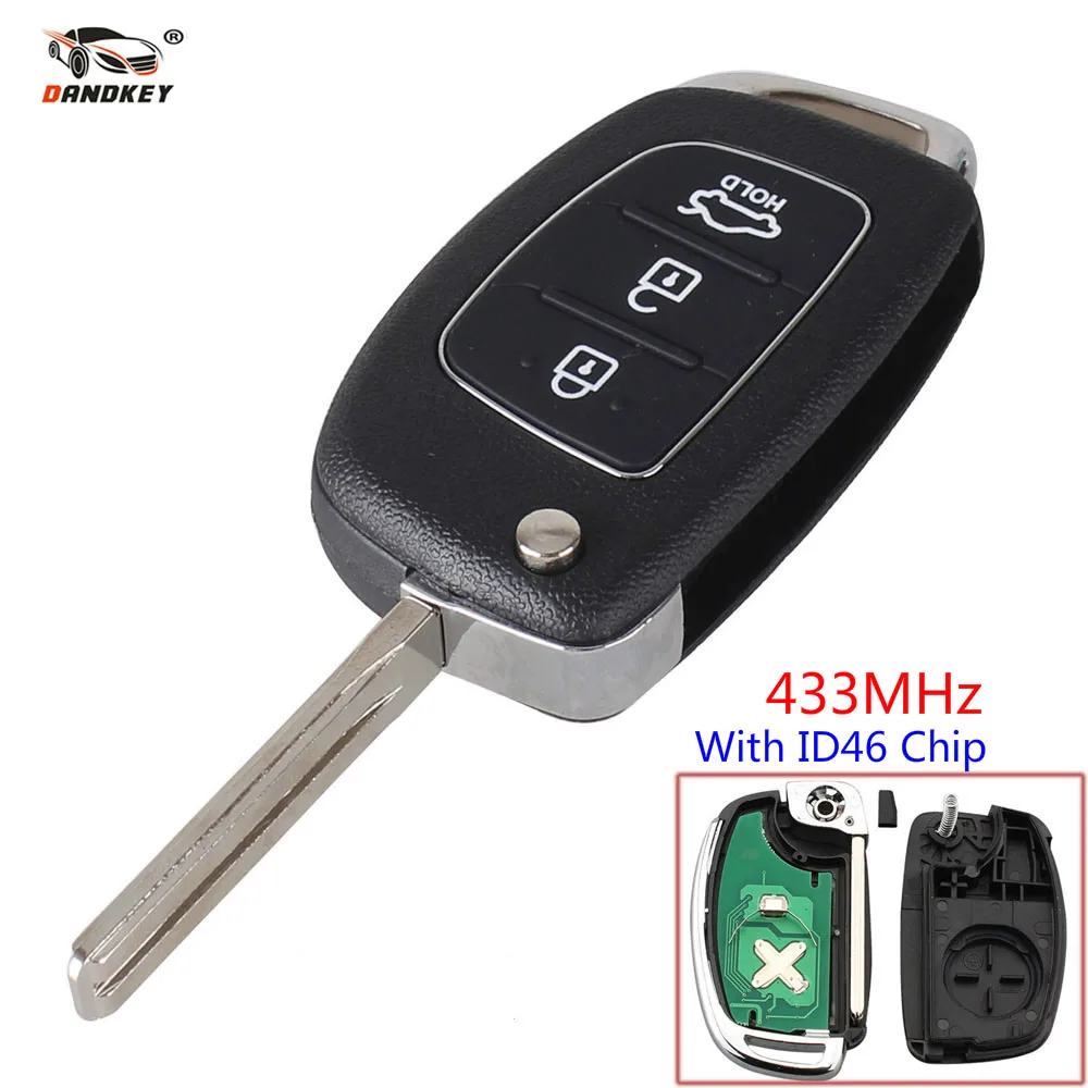 Dandkey чехол для дистанционного ключа от машины 3 кнопки Fob 433 МГц с чипом ID46 TOY40 для Hyundai New IX35 IX25 IX45 Elantra Santa Fe
