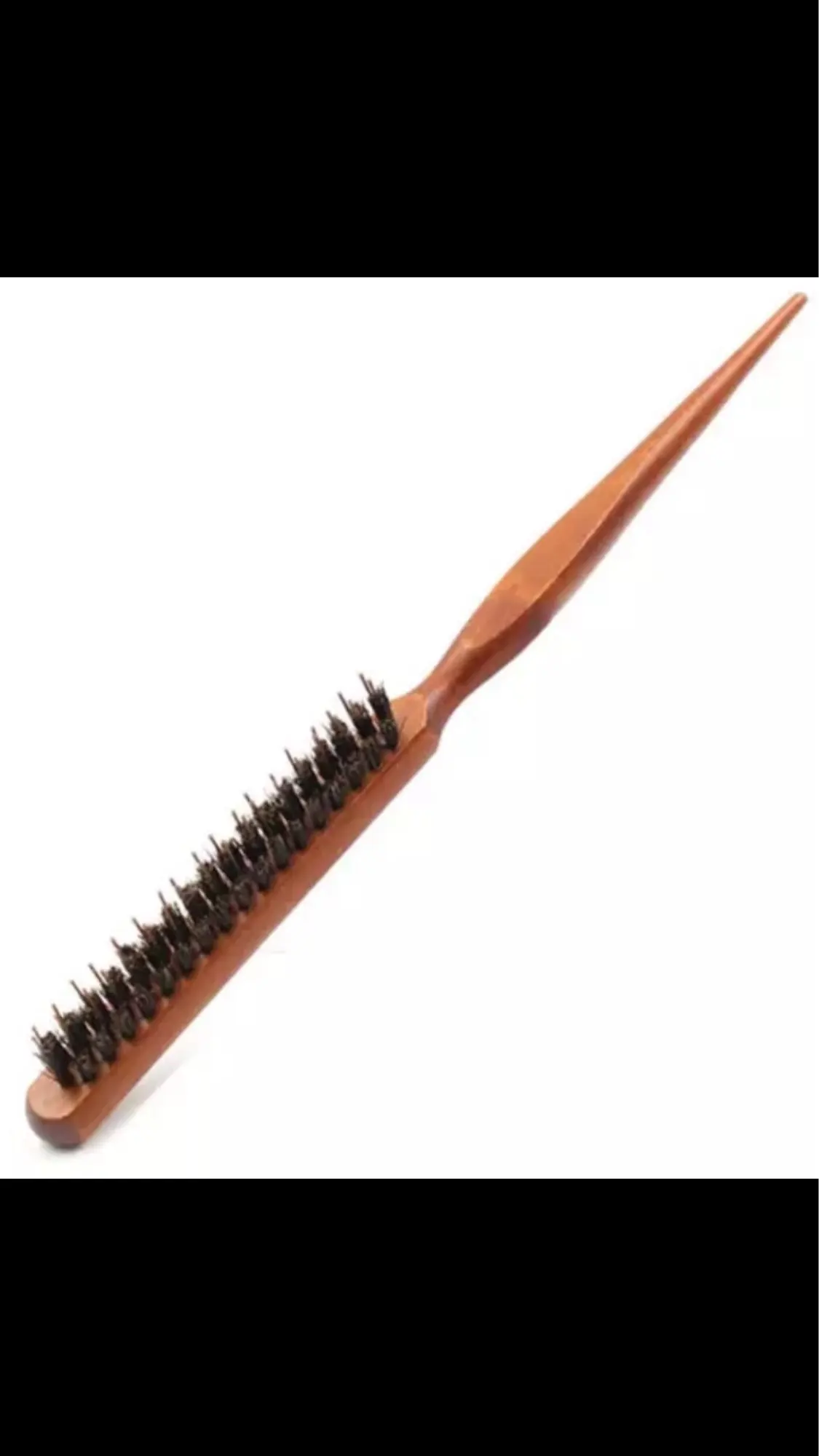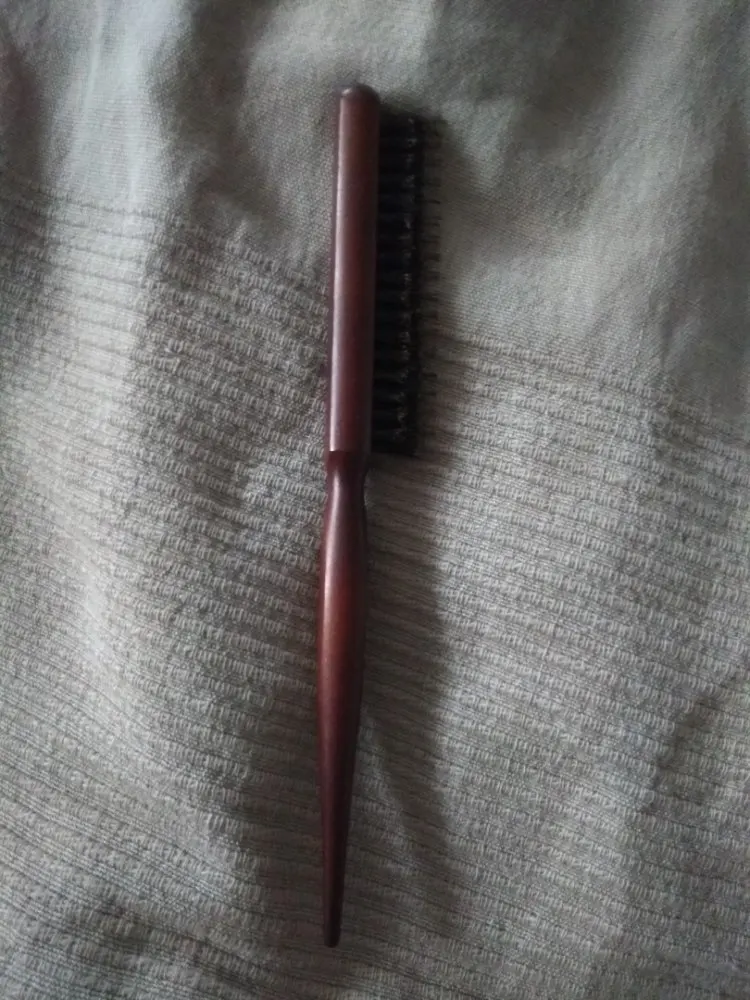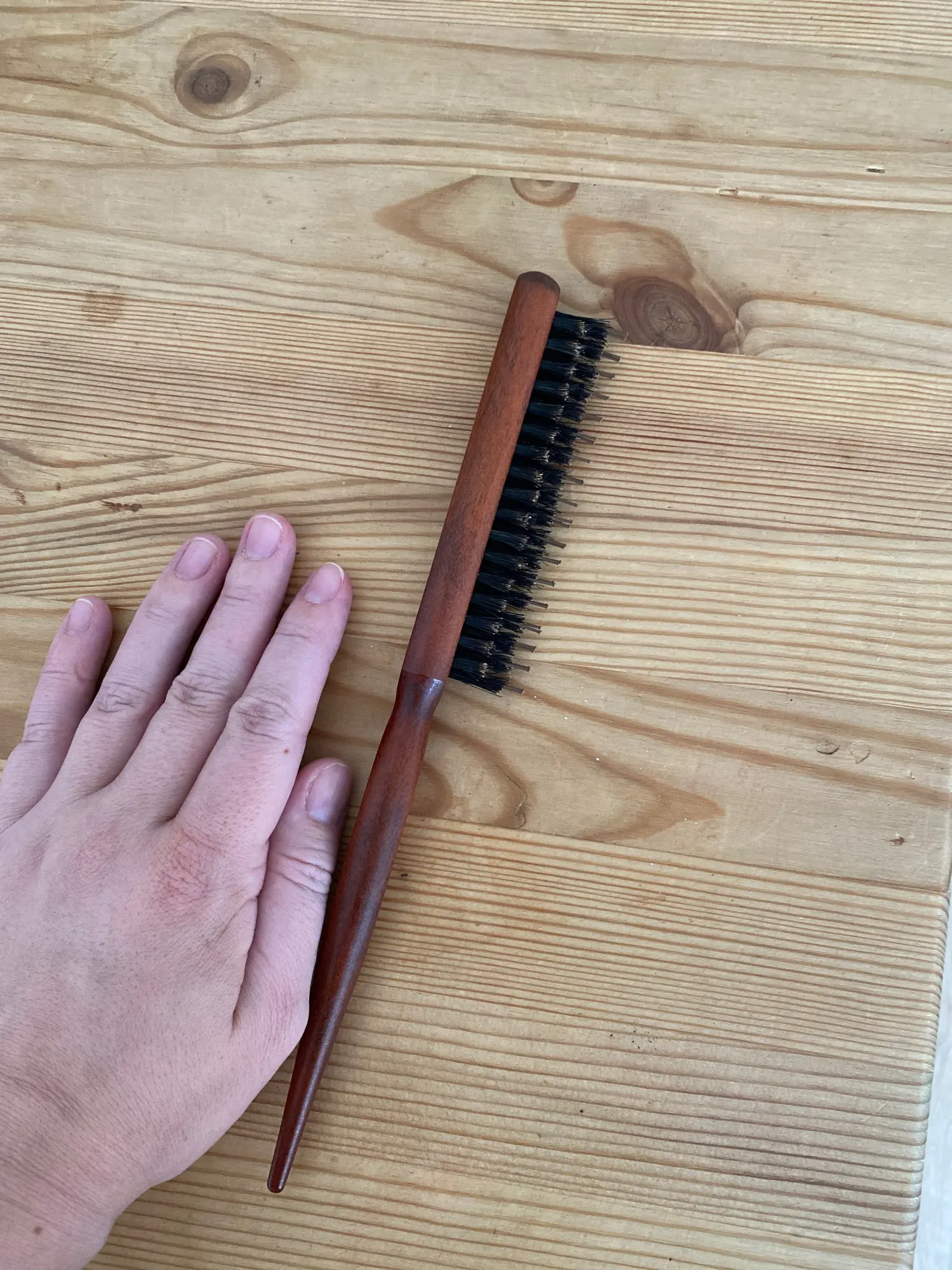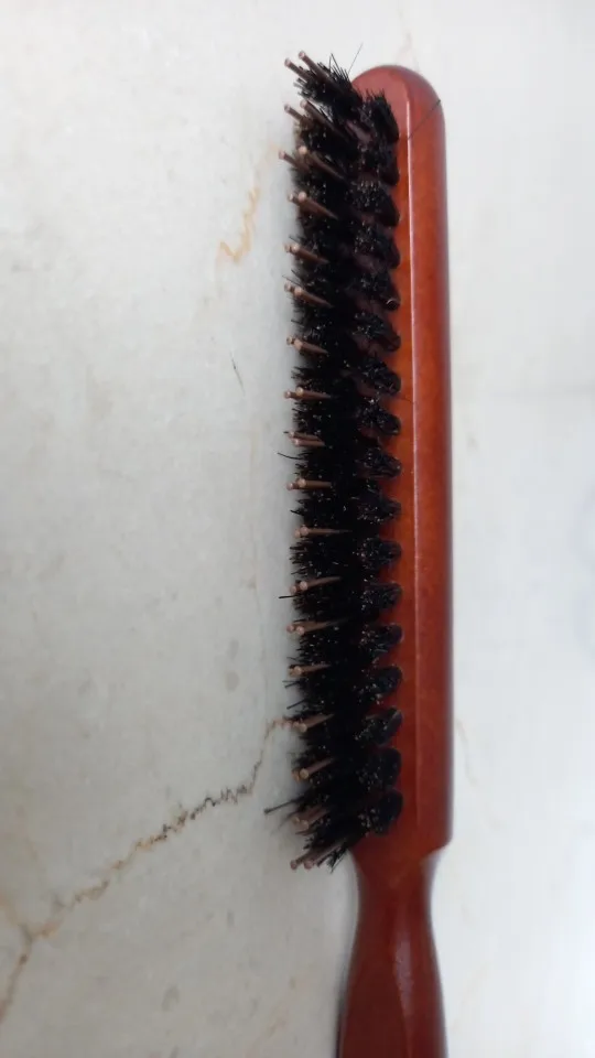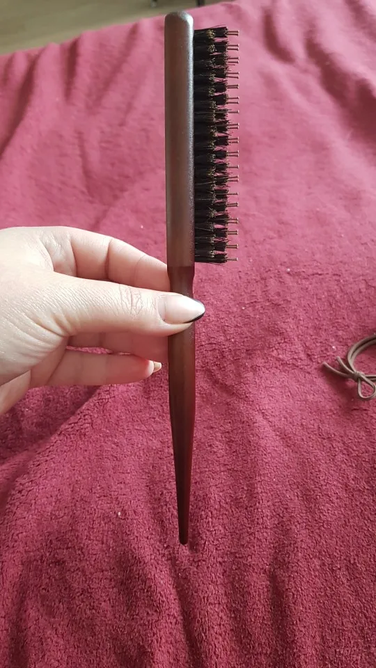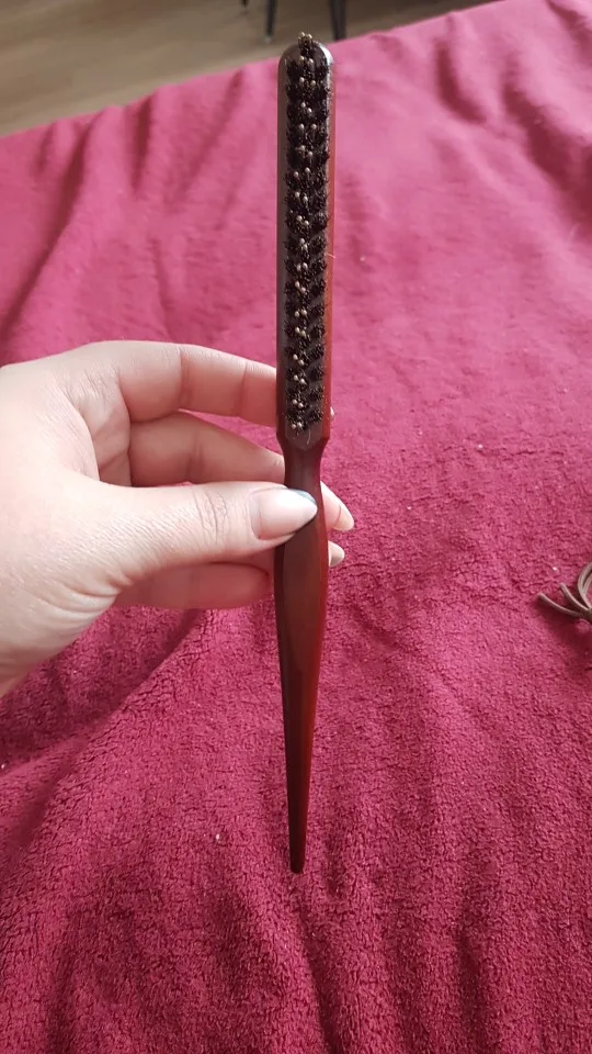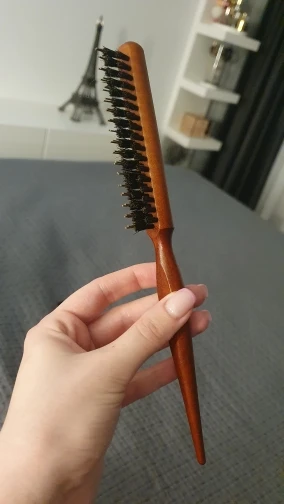 Отличная расчёска для начёса. Смесь натуральной щетины и более высоких пластиковых зубчиков-гвоздиков. Основание деревянное, покрыто лаком или воском, очень хорошо выполнено. Нет зазубрин и неровностей, все гладко и аккуратно. Ручка эргономичная. Очень довольна покупкой, рекомендую) большое спасибо продавцу!)