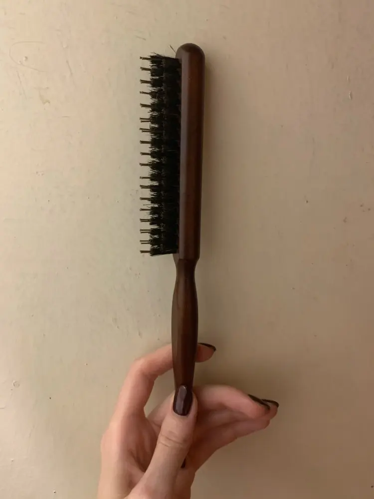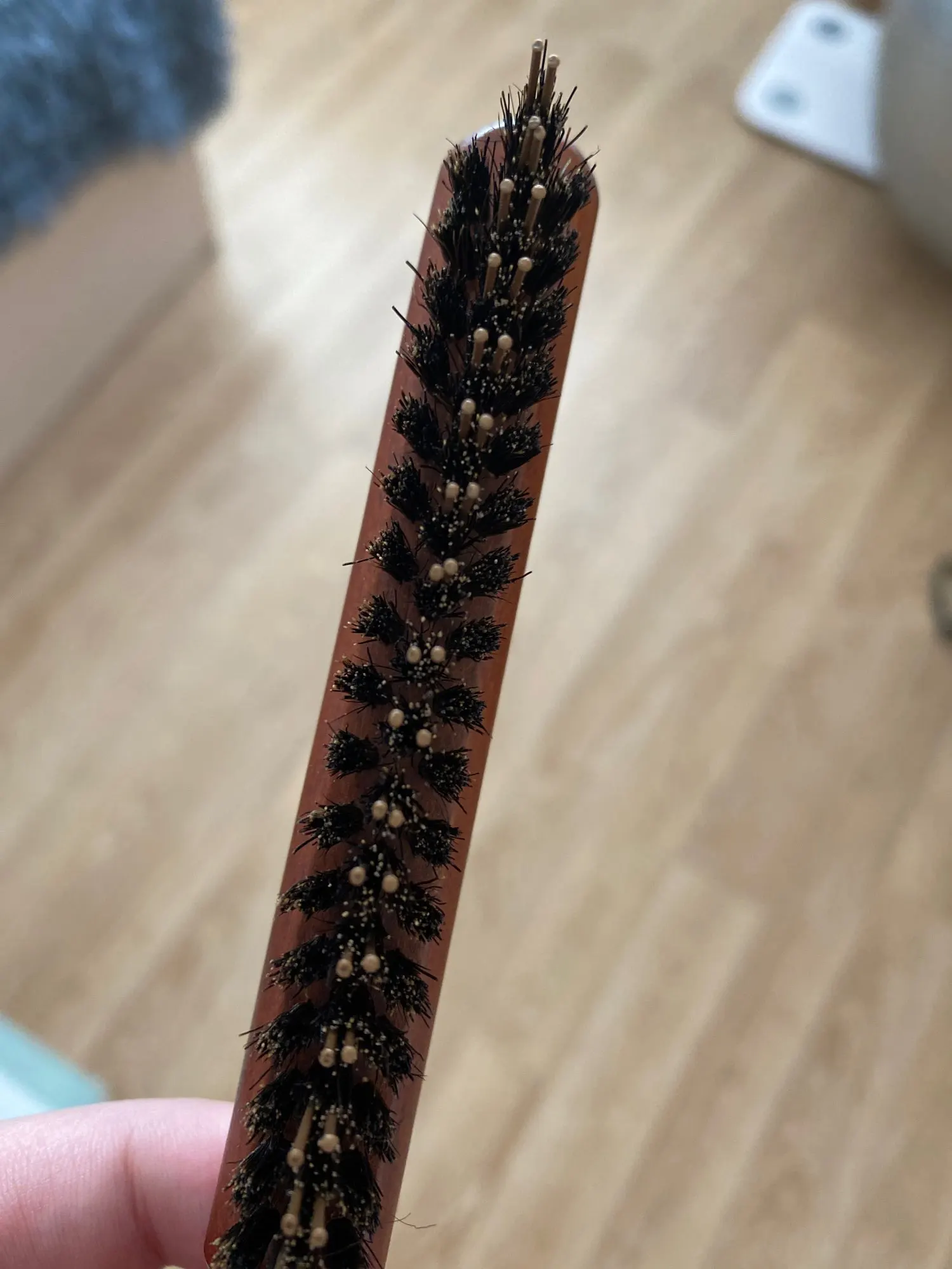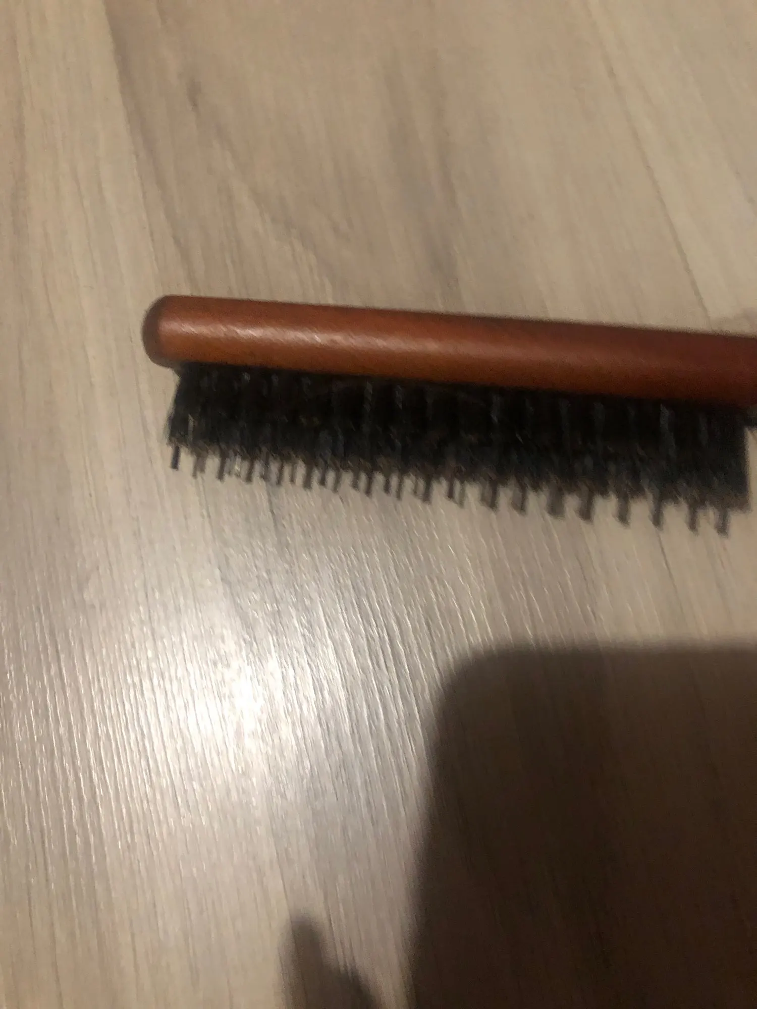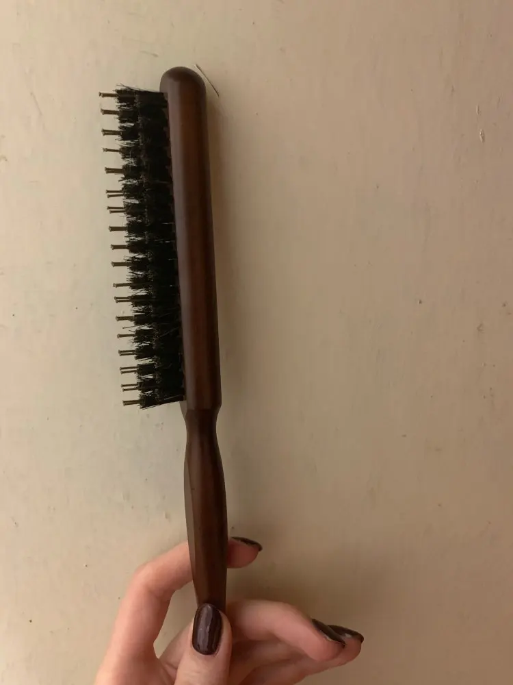 Отличная расчёска для начёса. Смесь натуральной щетины и более высоких пластиковых зубчиков-гвоздиков. Основание деревянное, покрыто лаком или воском, очень хорошо выполнено. Нет зазубрин и неровностей, все гладко и аккуратно. Ручка эргономичная. Очень довольна покупкой, рекомендую) большое спасибо продавцу!)