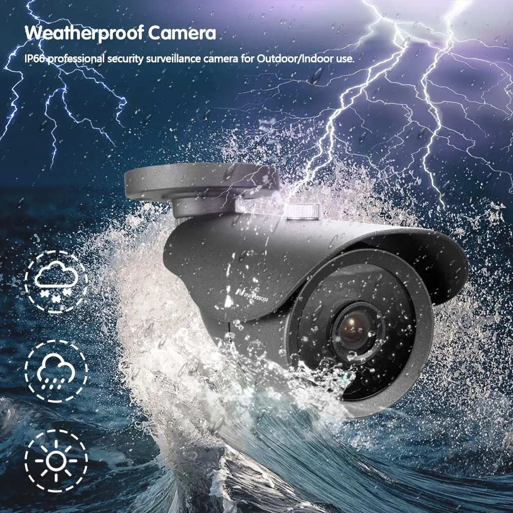 Используйте их в качестве наружных камер или крытых камер, так как они построены жестко, выдерживает любую погоду: дождь, снег, пыль и жаркие дни. С защитой от атмосферных воздействий IP66 и кабелями, просвечивающимися через подставку для защиты, гарантируем, что вы сможете ответить на их производительность, день в день. Наша камера имеет сверхпрочный металлический корпус, профессиональный IP66, устойчивый к атмосферным воздействиям, обеспечивая стабильную производительность как внутри, так и снаружи.