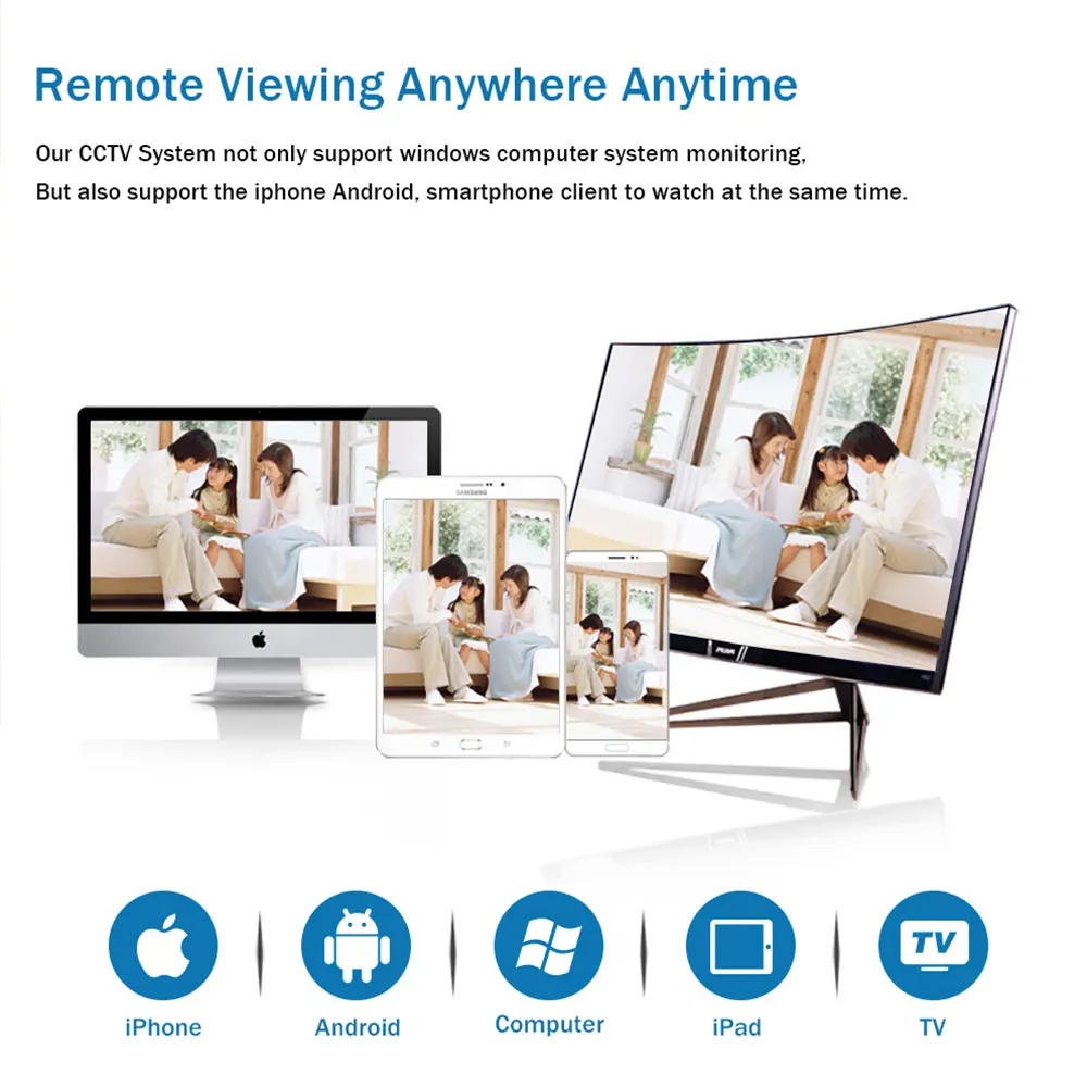 Простая настройка, всего 4 шага для просмотра мобильный телефон, просмотра видео в режиме реального времени из любого места и в любое время с помощью смартфона, стола или ПК с передовой технологией P2P, вы можете получить удаленный доступ к вашей системе за считанные минуты или меньше, нет необходимости в переадресации, удаленный доступ никогда не был таким простым!