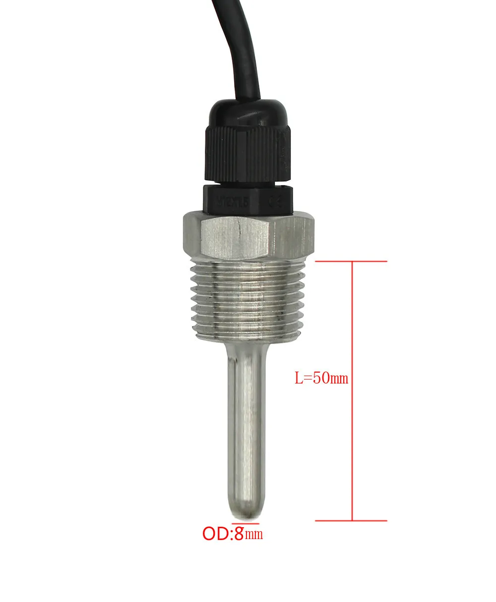 Цифровой датчик температуры DS18B20, резьбовой зонд G12 дюйма, диаметр 6, 7, 8 мм, 1 м, 3-жильный провод из нержавеющей стали SUS304, в корпусе ds18b20