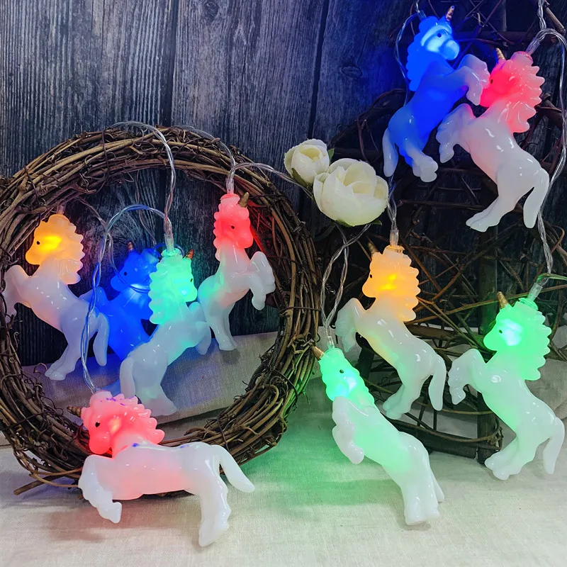 Светодиодная гирлянда с милым единорогом, розовая гирлянда, светильник на Рождество, на батарейках, для праздника, свадьбы, дома, для девочек, спальни, вечерние украшения