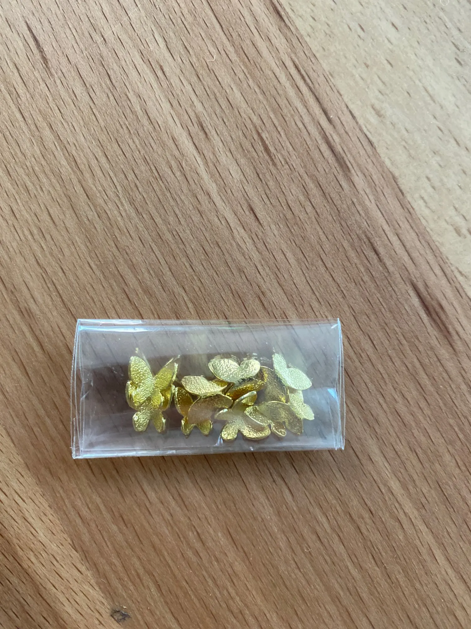 Маленькие бабочки очень кокетливы, для и я вижу их большими, но для украшения это идеально, потому что они соответствуют их размеру. Легко приклеить горячим силиконом. Он много сияет и хорошо выглядит, как бабочки.