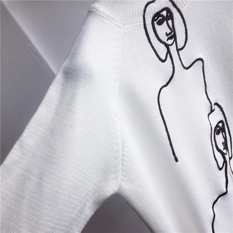 Корейский женский свитер с вышивкой, с длинным рукавом, 2021