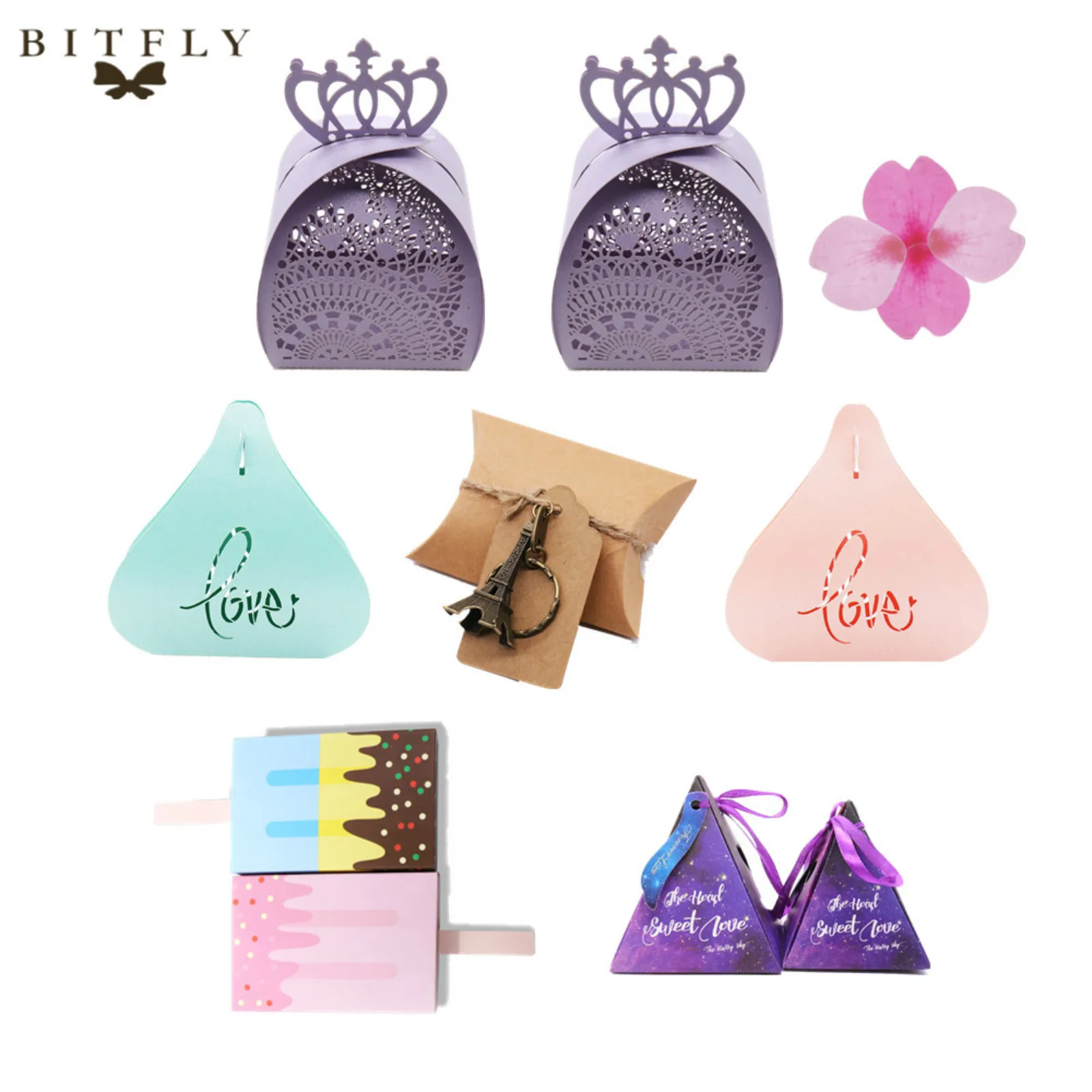 BITFLY 10 шт Милая бумажная коробка конфет свадьба, день рождения, ребенок душ Корона, мороженое, следы, коробка для конфет любовь коробка шоколада