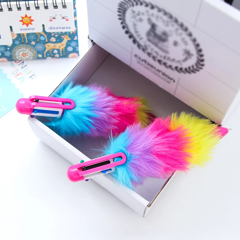 1 шт. милые плюшевые шариковые ручки радужного цвета 6 цветов s-обр...