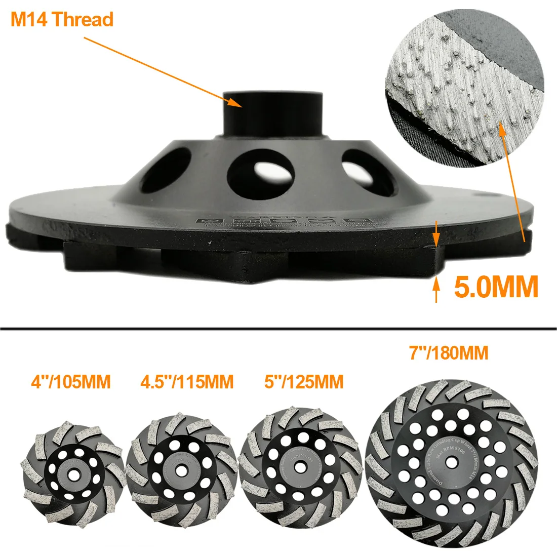 2шт 4 "4,5"5 "7" Алмазная Сегментированная бетонная турбо чашка шлифовальный круг M14 или 58-11 нить для твердого камня за морем склад