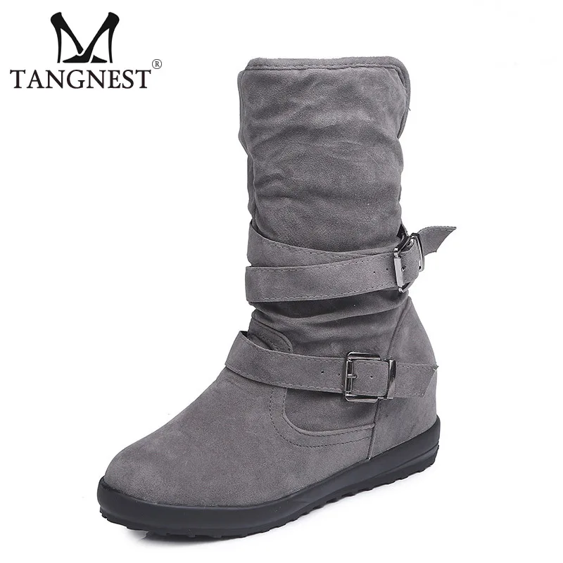 Tangnestзимние женские ботинки; однотонная обувь на плоской подошве; армейские ботильоны для верховой езды; женские модные повседневные теплые ботинки; большие размеры; XWX7072