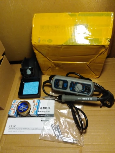 Хороший паяльник с подставкой + приятные мелочи в комплекте. Внешне качественно сделан. Приехал довольно быстро. Посылка целая.