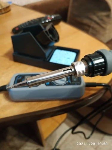 отличная министанция, нагрев очень быстрый, температура регулируется, через 10 мин идет спать).,кабель от ручки до блока =1м, сам кабель очень мягкий, а вот сетевой кабель жесткий как у компьютера. ручка паяльника удобная как шариковая. значит родной наконечник имеет внутр.диаметр 4,2мм и он завтулен стальной гильзой, остальные наконечники с диаметром 4,5мм без гильзы с намеком на медь по цвету. сам нагреватель имеет диаметр 3,8мм. Я доволен ,инструмент хороший , запаковано норм , думаю что это самый лучший вариант среди этой цены и огромный плюс удобной недлинной ручки.