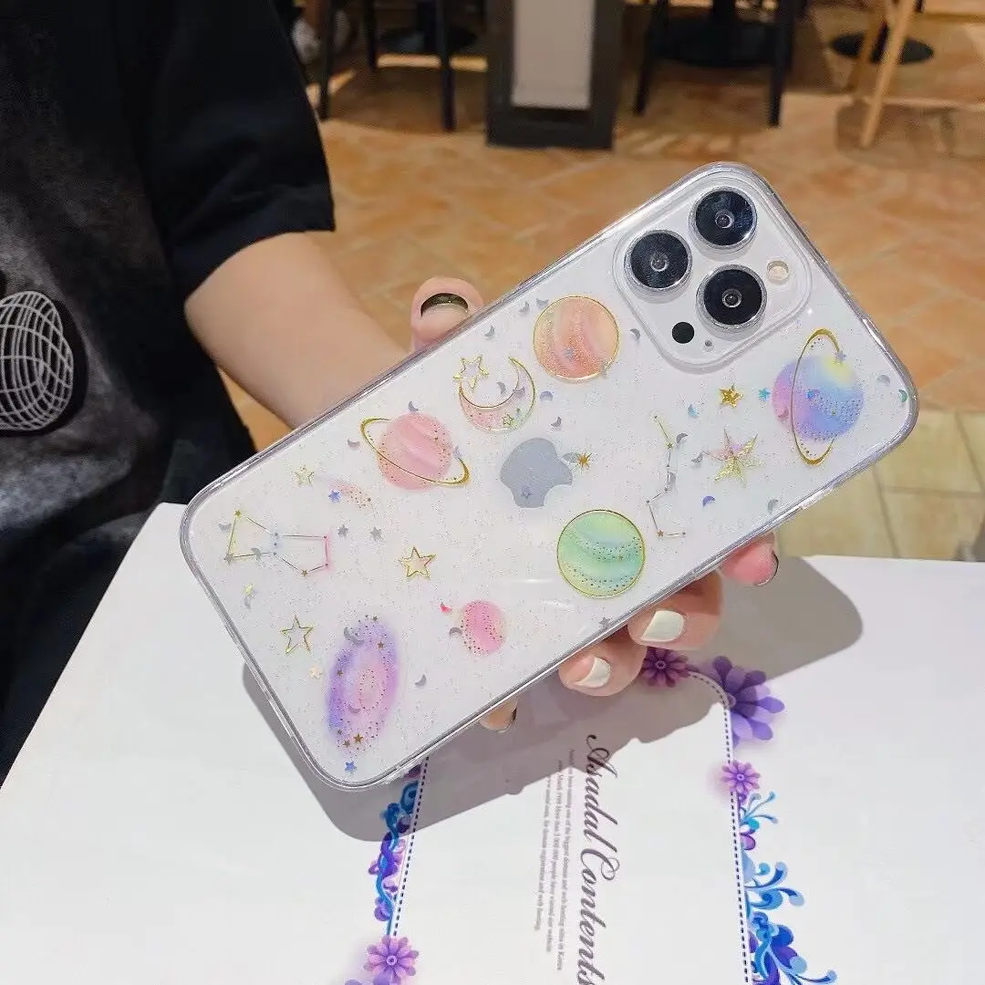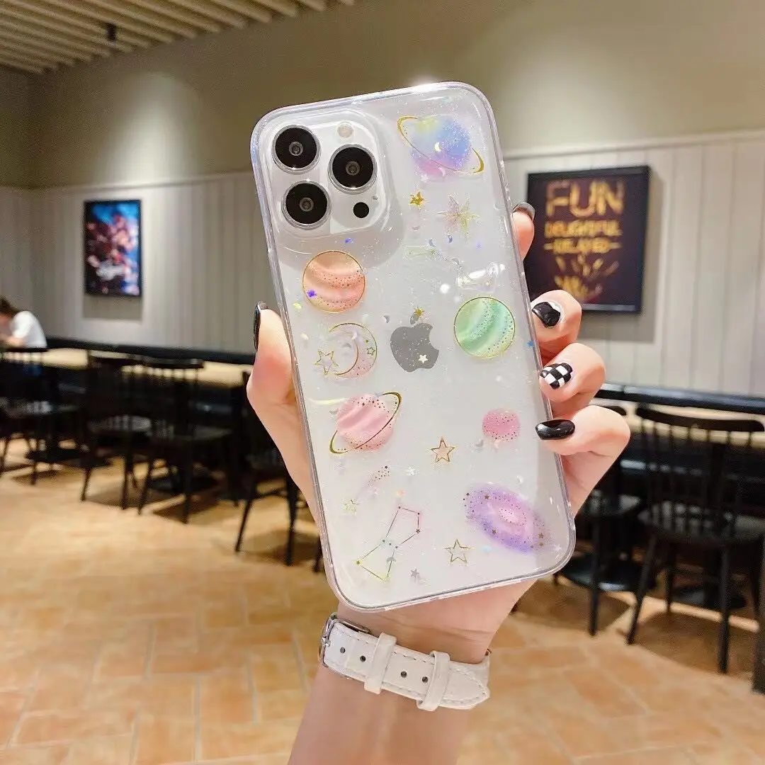 Прозрачный блестящий чехол для телефона с изображением Луны звезд планеты для iphone 13 Pro 12Pro Max 11 XR X 7 8 Plus INS Корейская задняя крышка
