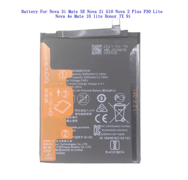 1x3340 мАч HB356687ECW Аккумулятор для Huawei Mate 10 Lite P30 Lite G10 Nova 2 Plus 2i 3i Mate SE Nova 4e Honor 9i 7X
