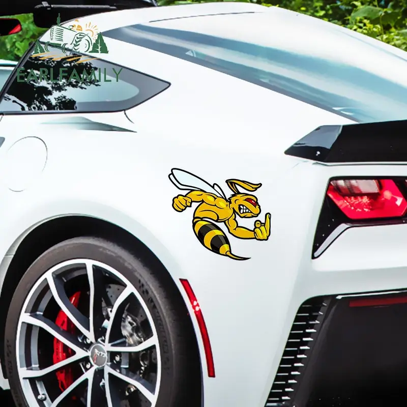 EARLFAMILY мультяшный Стайлинг автомобиля, сильная пчела, наклейки на автомобиль, мотоциклетный шлем, виниловый Шмель, переводные наклейки на бампер, автомобильные аксессуары