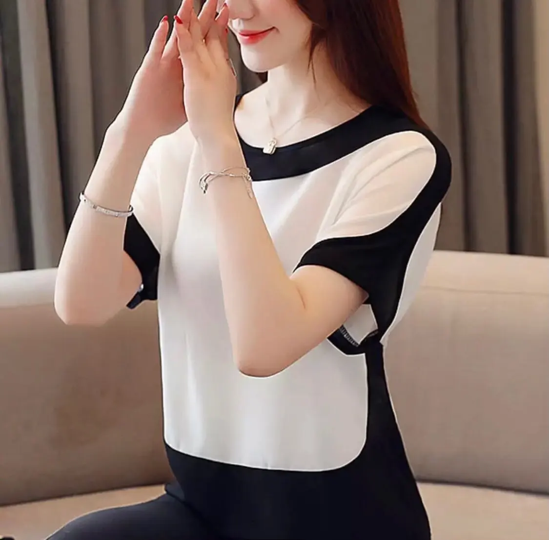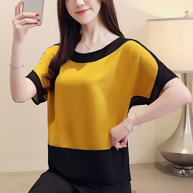 Женские блузки из шифона, большие размеры, однотонные короткие блузки с круглым вырезом и рукавами летучая мышь, 2021, женские майки и футболки