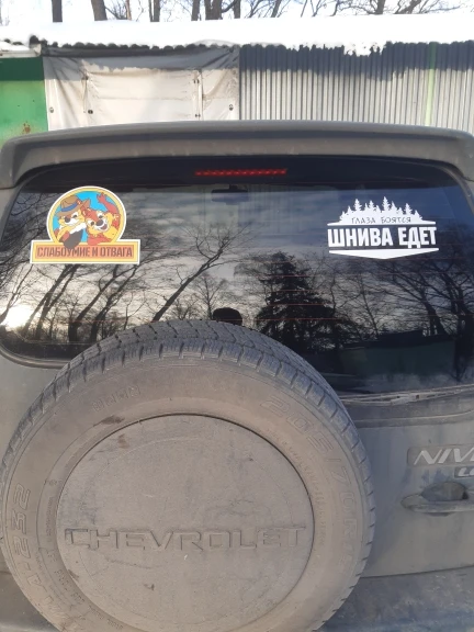 полкчил комплект из 2 штук. изображение чуть размытое, я так полагаю, что из-за того, что решили сделать наклейку по-больше, чего не нужно было делать, моё мнение. Считаю, если бы она была по-меньше, то и качество изображения было лучше и на машине смотрелось бы удобнее и уместнее, а так закрываетчуть ли не четверть стекла.)))