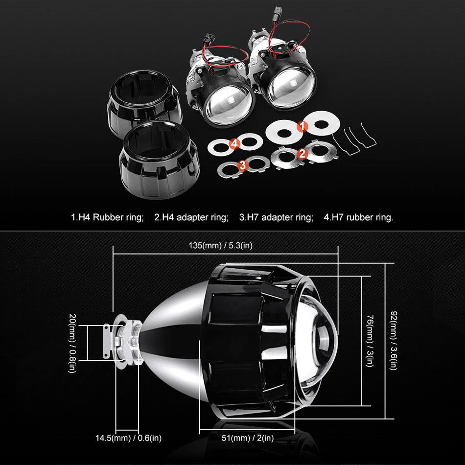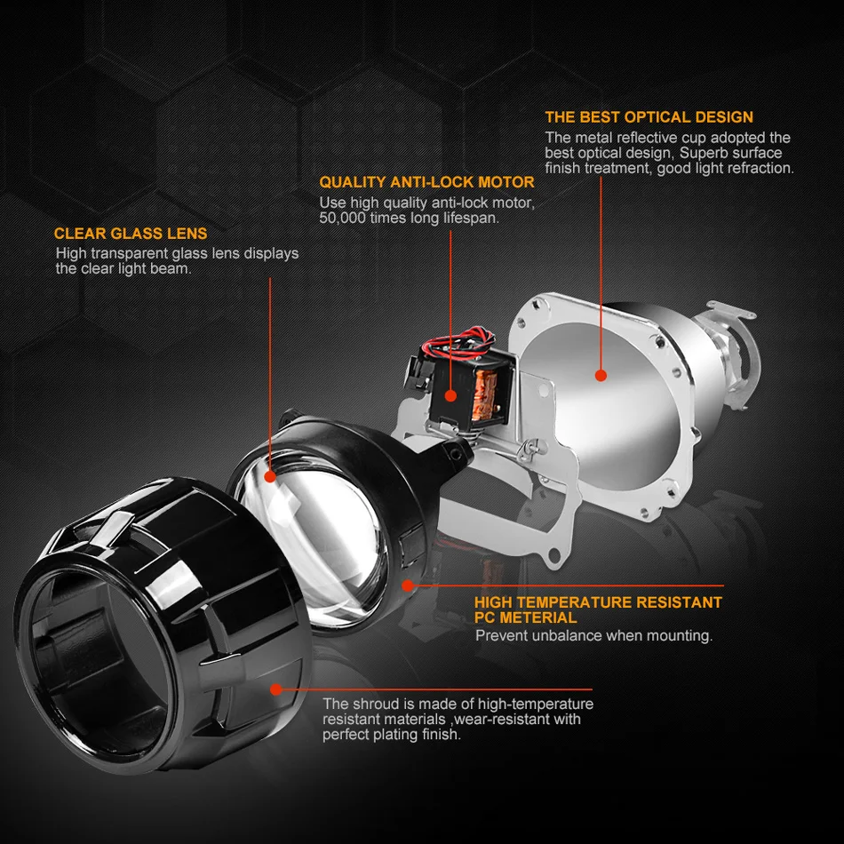 Биксеноновые фары RACBOX для стайлинга автомобилей, 2,5 дюйма