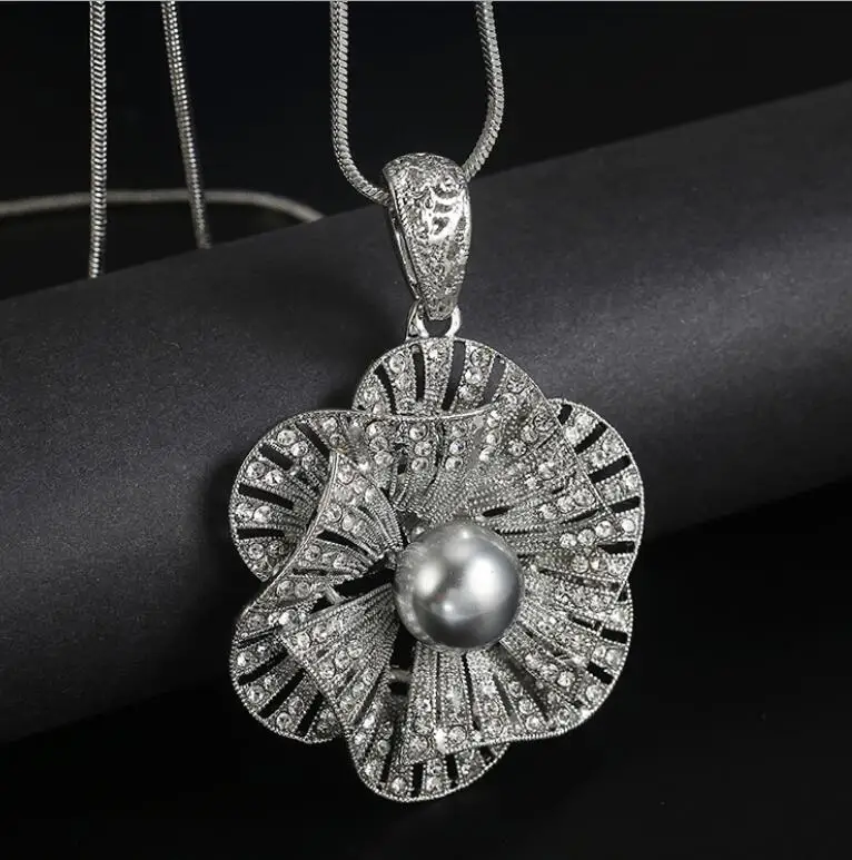 Модное ожерелье с кристаллами, подвески для снега, женское ожерелье с подвеской в виде подсолнуха, подвеска с жемчугом, длинное ожерелье с цепочкой для свитера