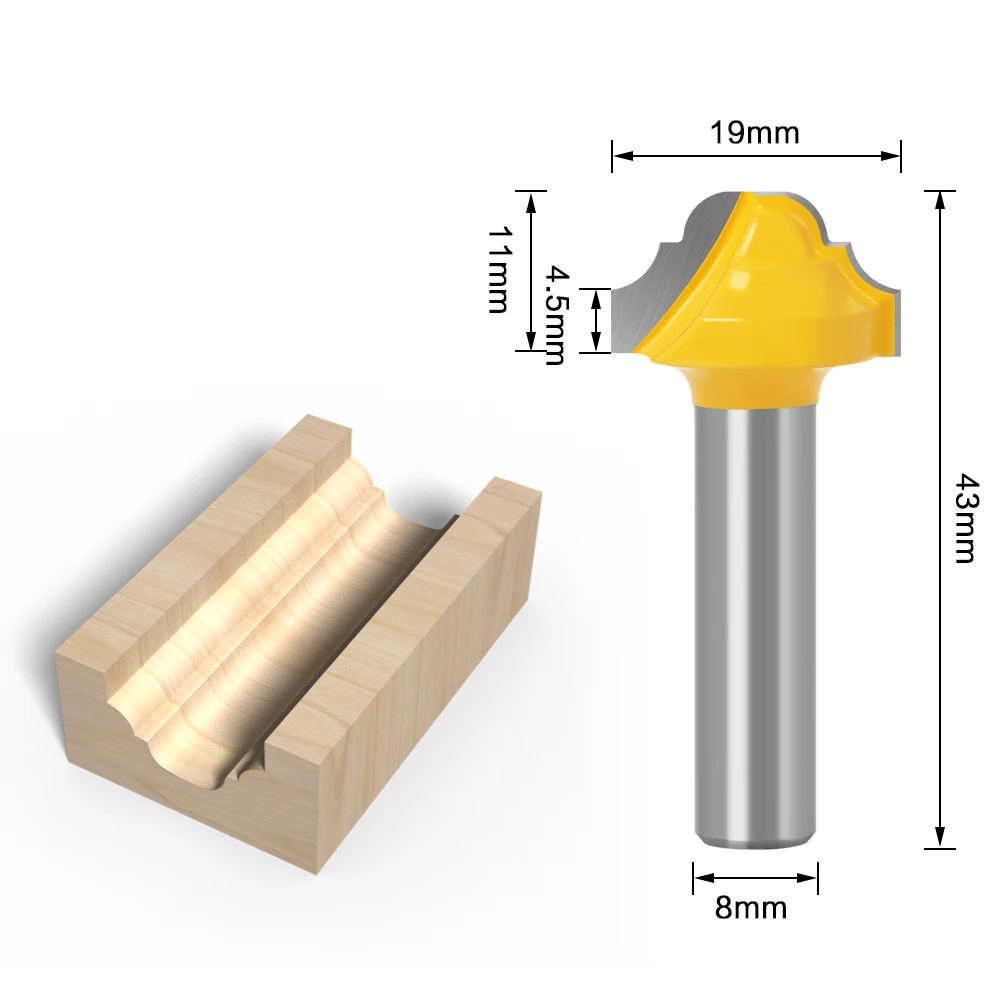 Концевая фреза с хвостовиком 8 мм, классическое бит 19 дюймов без подшипника, хвостовик 8 дюймов